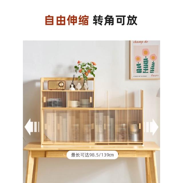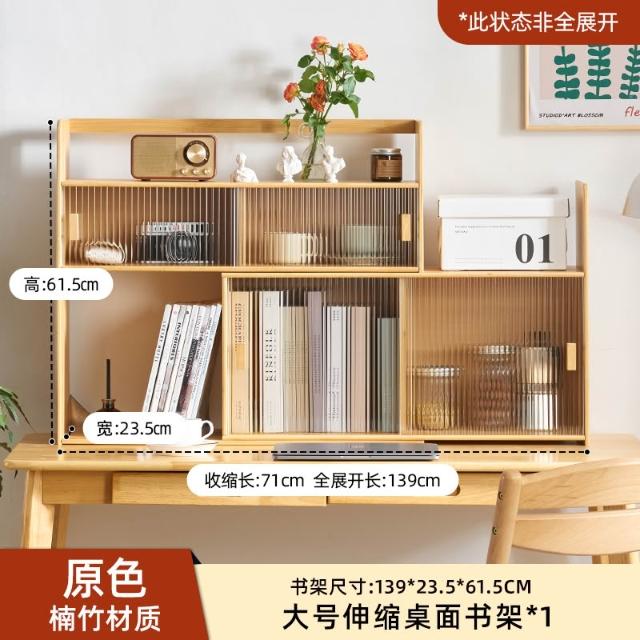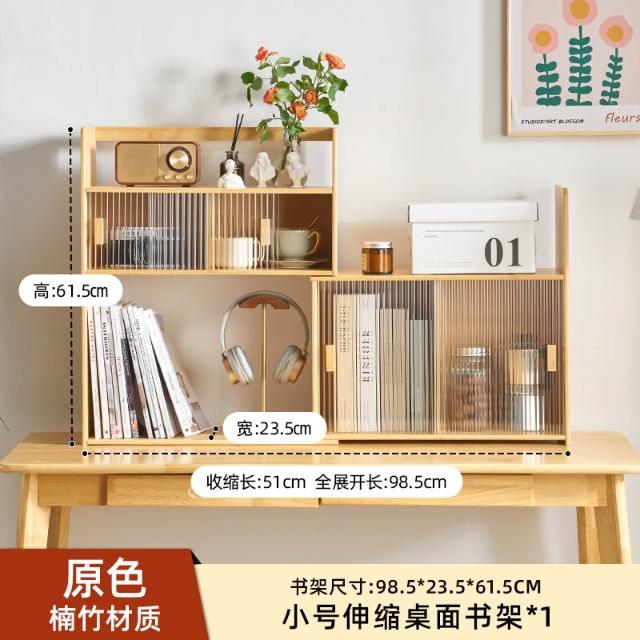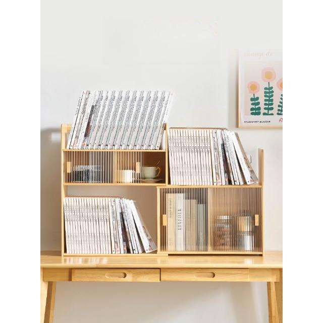 可伸縮書架桌面置物架辦公室桌上多層收納架日式原木風學生小書櫃