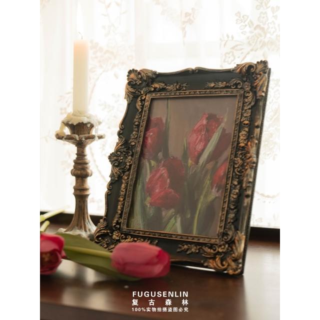 復古歐式vintage浮雕黑色樹脂相框畫框家居擺件牆面裝飾雕花壁掛