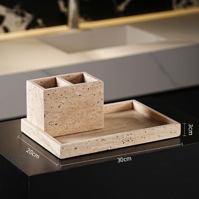 天然大理石黃洞石侘寂中古風衛生間置物架洗漱衛浴五件套擺件託盤