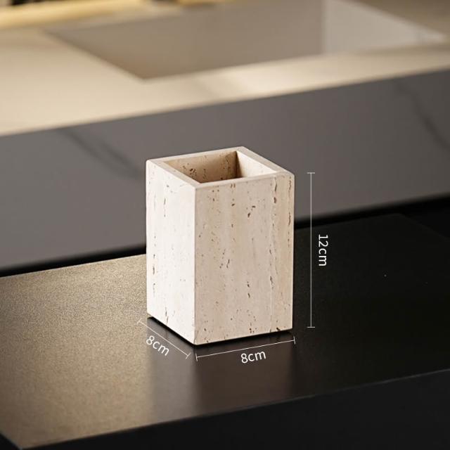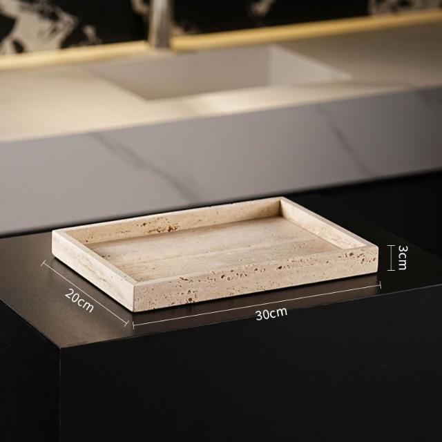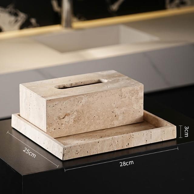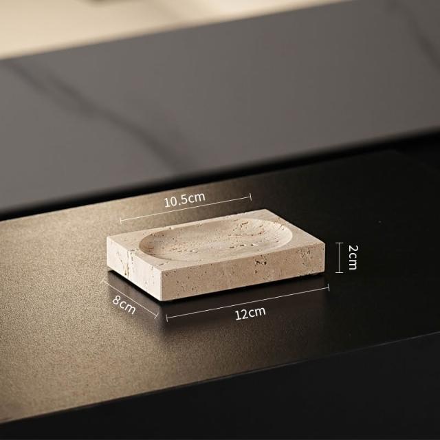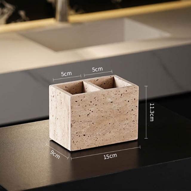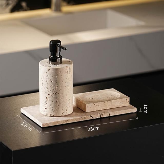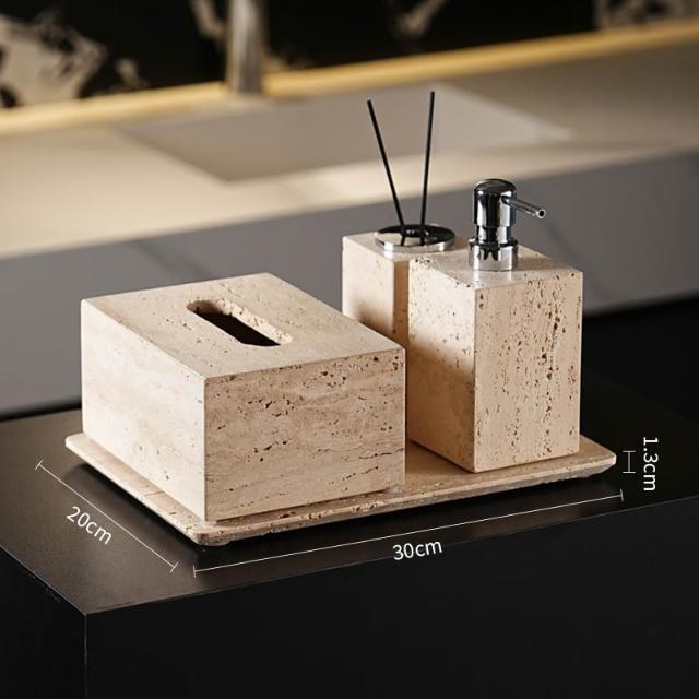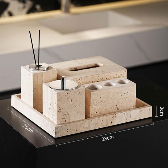 天然大理石黃洞石侘寂中古風衛生間置物架洗漱衛浴五件套擺件託盤