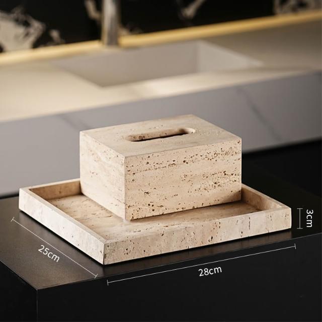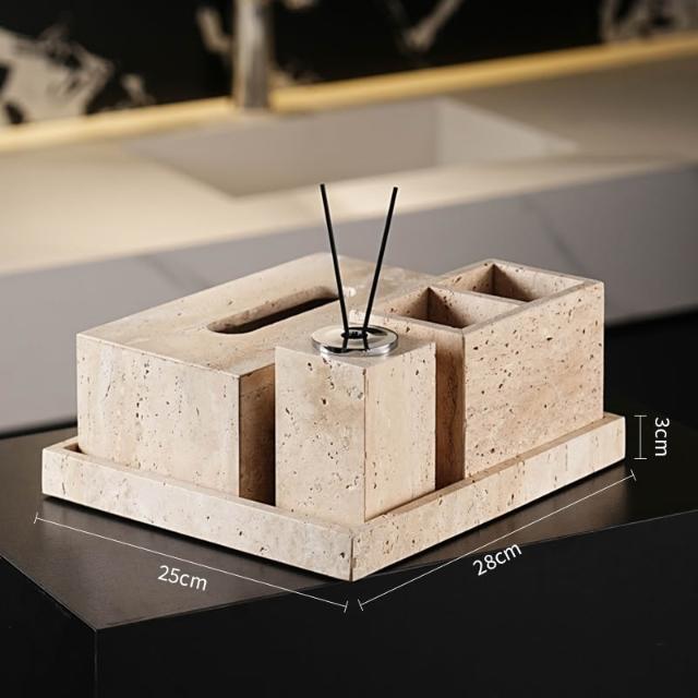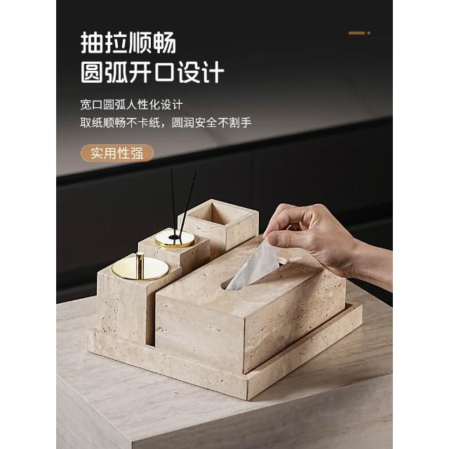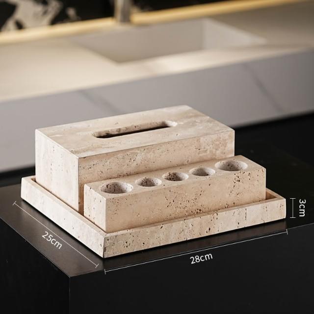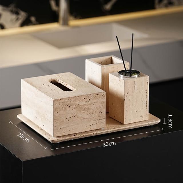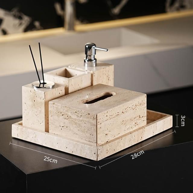 天然大理石黃洞石侘寂中古風衛生間置物架洗漱衛浴五件套擺件託盤