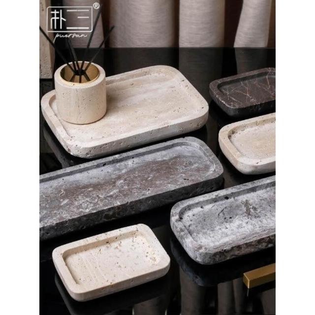 天然黃洞石託盤擺件酒店浴室大理石洗漱品玄關首飾香薰收納置物盤