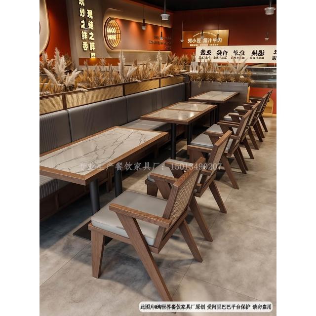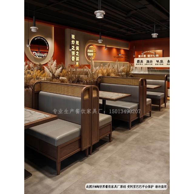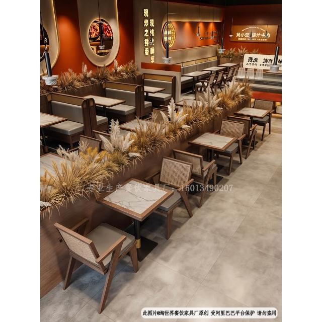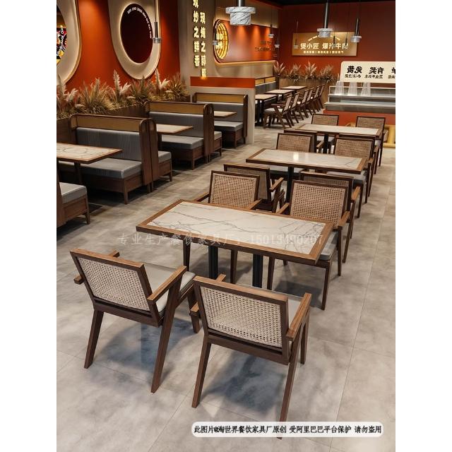 東南亞風茶餐廳實木藤編卡座沙發商用靠牆咖啡廳火鍋店桌椅子組合