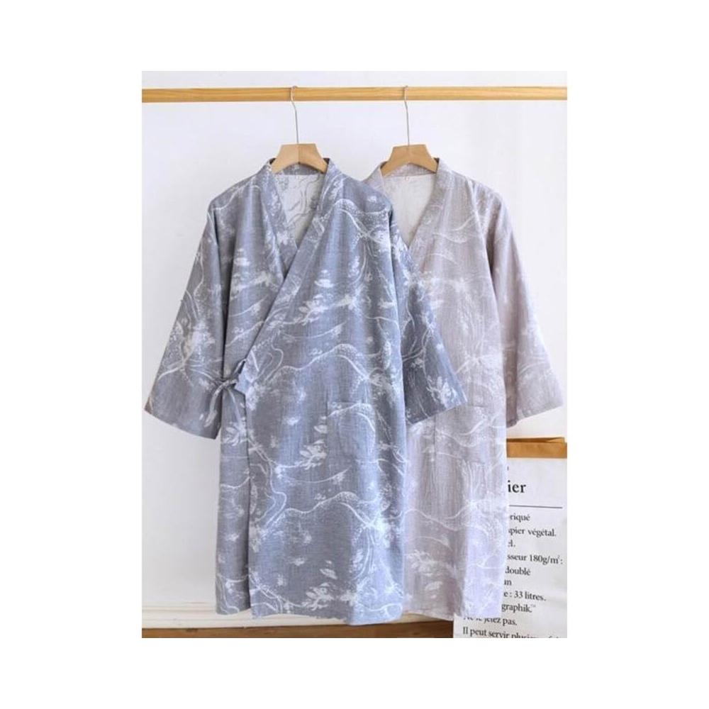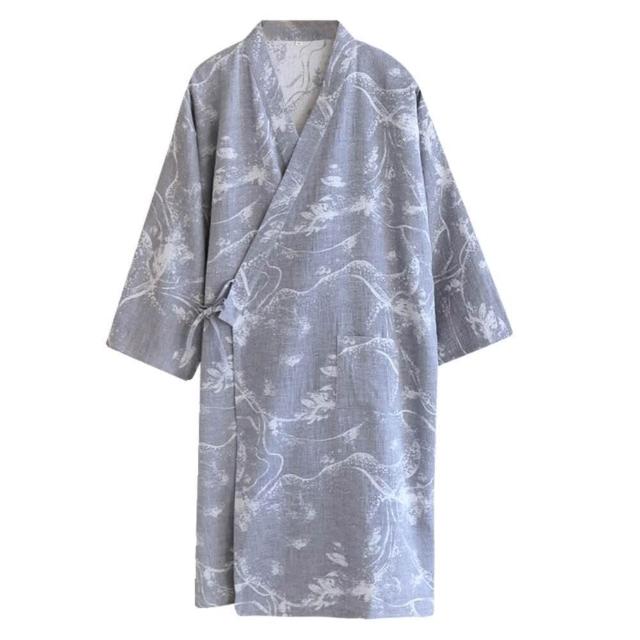純棉紗布男士日式和服睡袍復古提花睡衣薄款全棉家居服浴衣汗蒸服