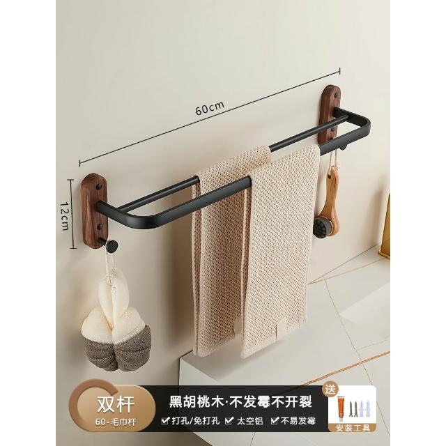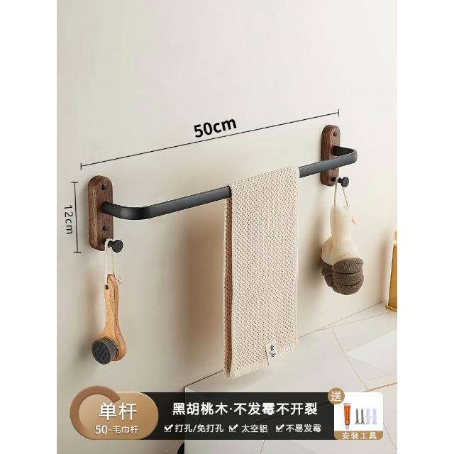胡桃木毛巾架免打孔衛生間壁掛式浴室毛巾掛杆洗手間收納掛架單杆