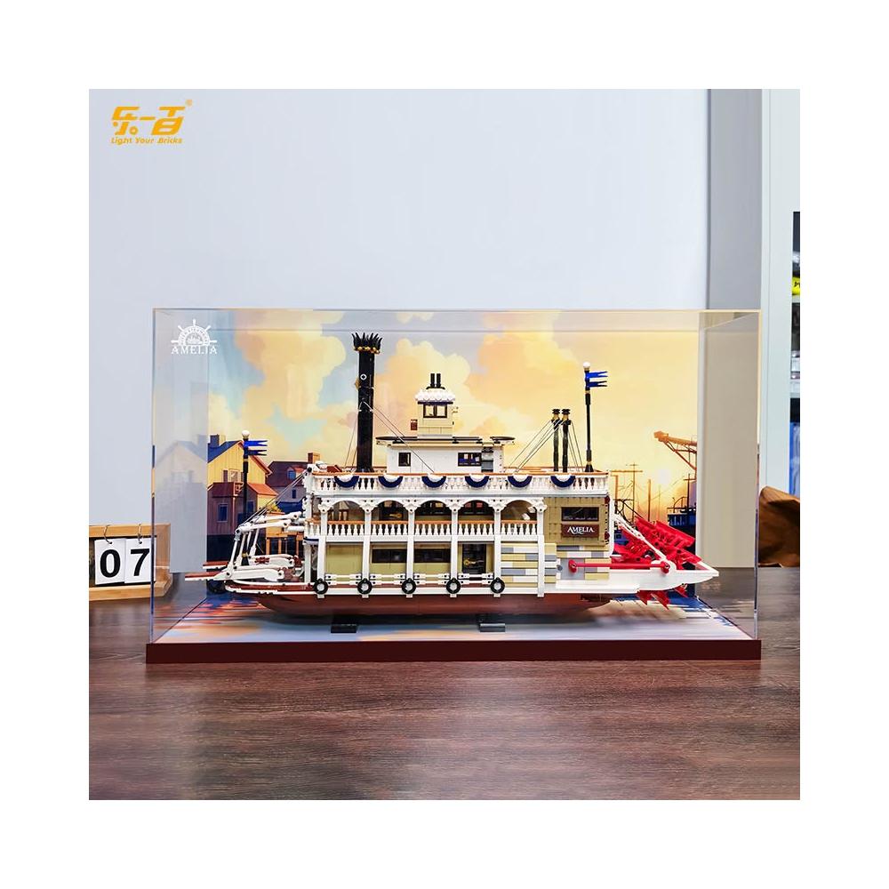 樂一百適用樂高21356運河蒸汽船積木亞克力展示盒收納盒防塵罩
