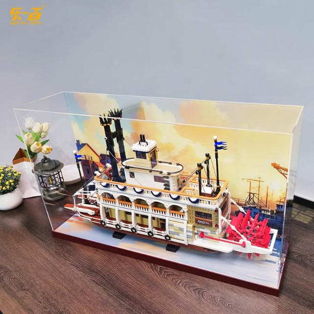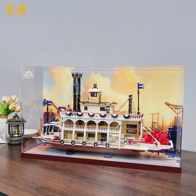 樂一百適用樂高21356運河蒸汽船積木亞克力展示盒收納盒防塵罩