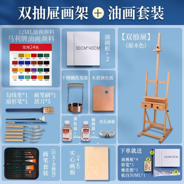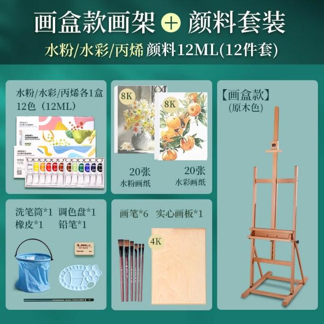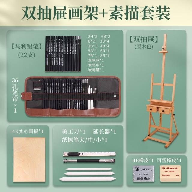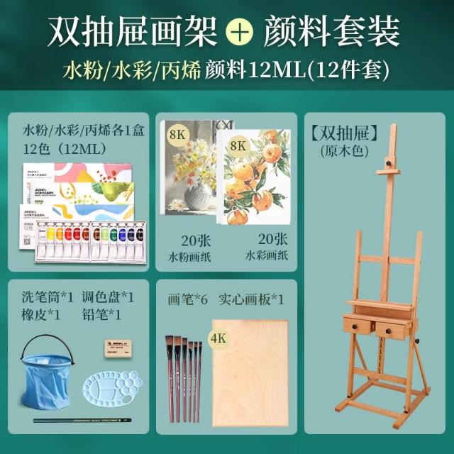 落地畫架畫板套裝美術生專用支架式櫸木折疊便攜兒童木制家用油畫架子油畫架初學者抽屜素描油畫工具全套