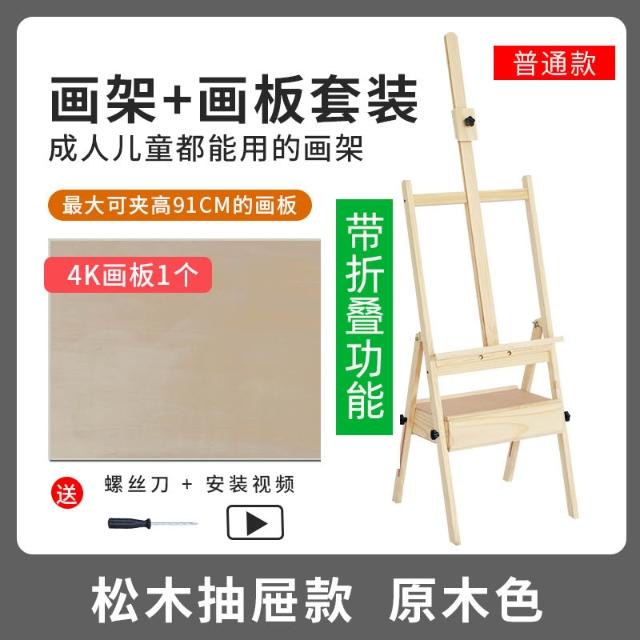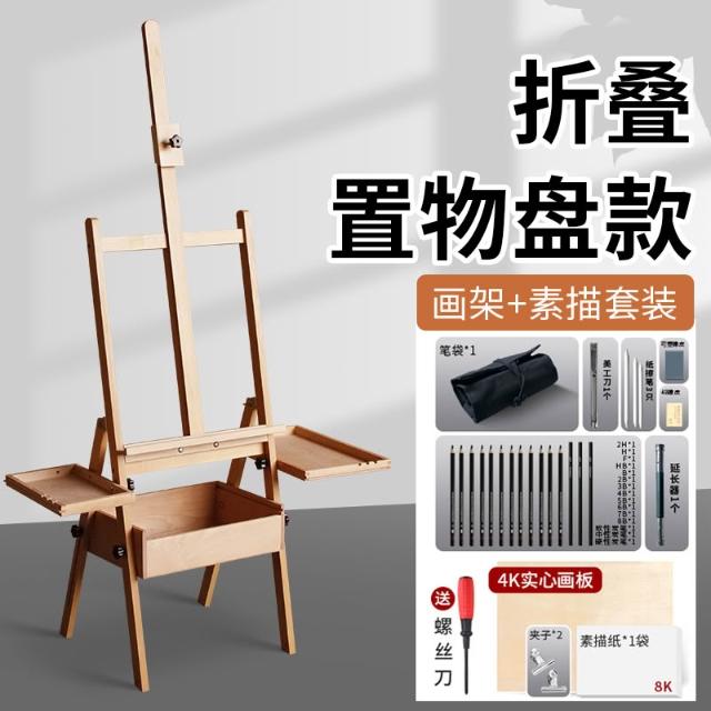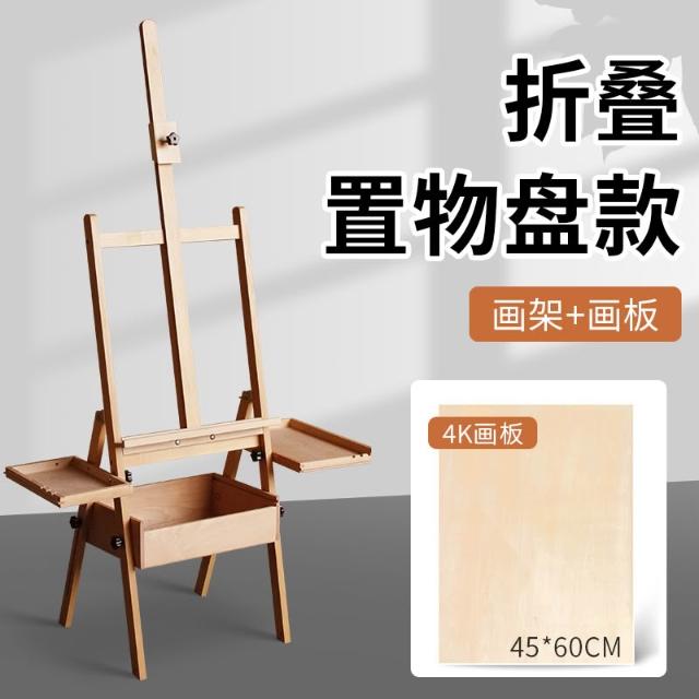 櫸木制美術生專用抽屜式可折疊平放成人兒童畫板架套裝素描油畫架