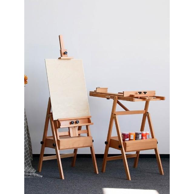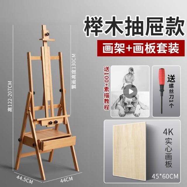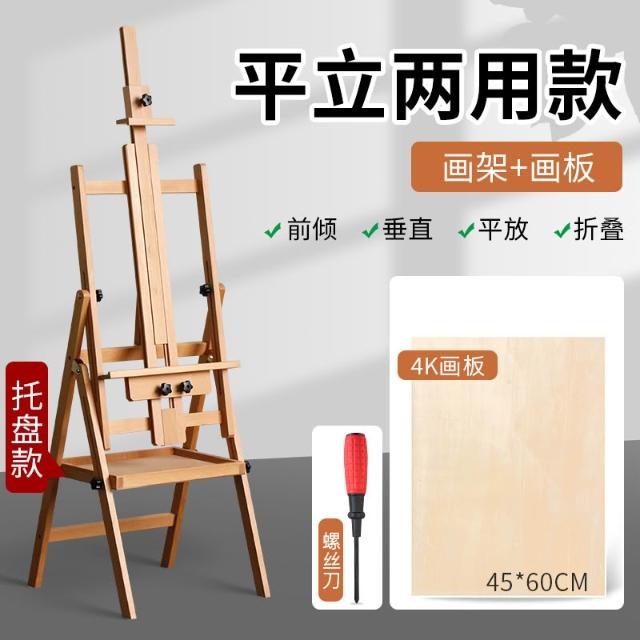 櫸木質畫架美術生專用可折疊4K畫板套裝平立兩用多功能可攜式素描油畫架全套成人兒童初學者繪畫架子