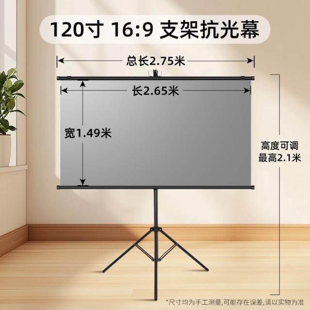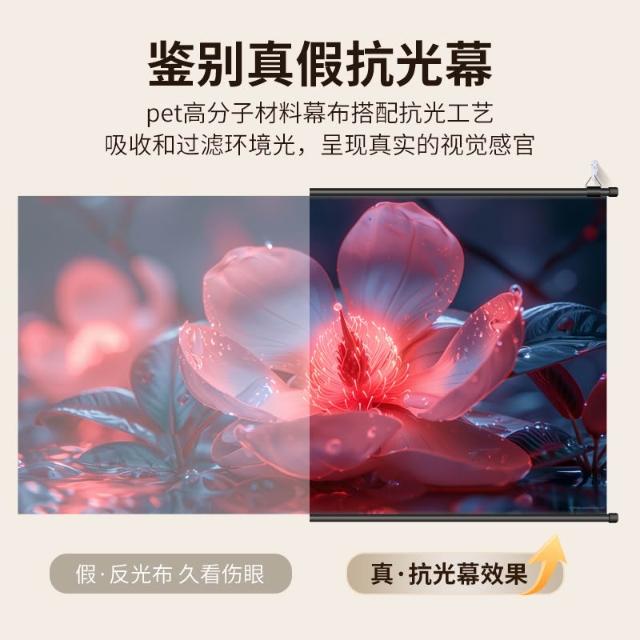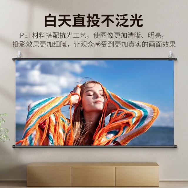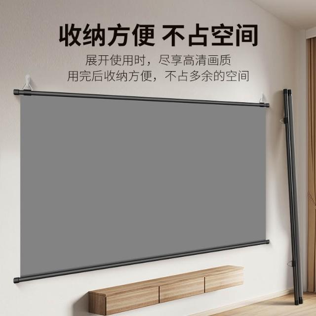 4K高清抗光投影幕布家用免打孔壁掛投影儀幕布84寸100寸120寸白天直投客廳臥室簡易投影布可移動便攜收納