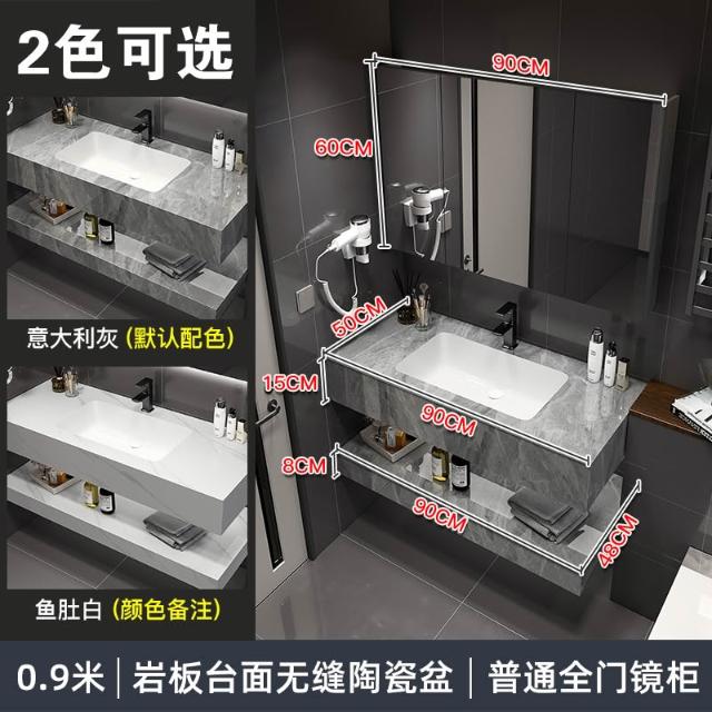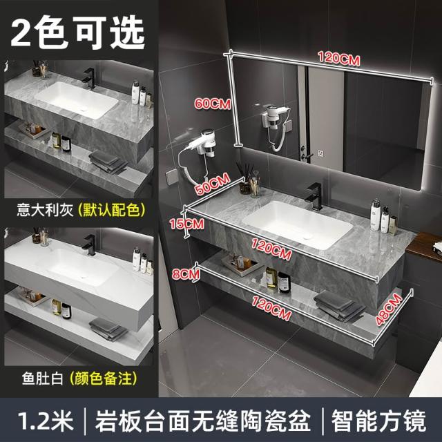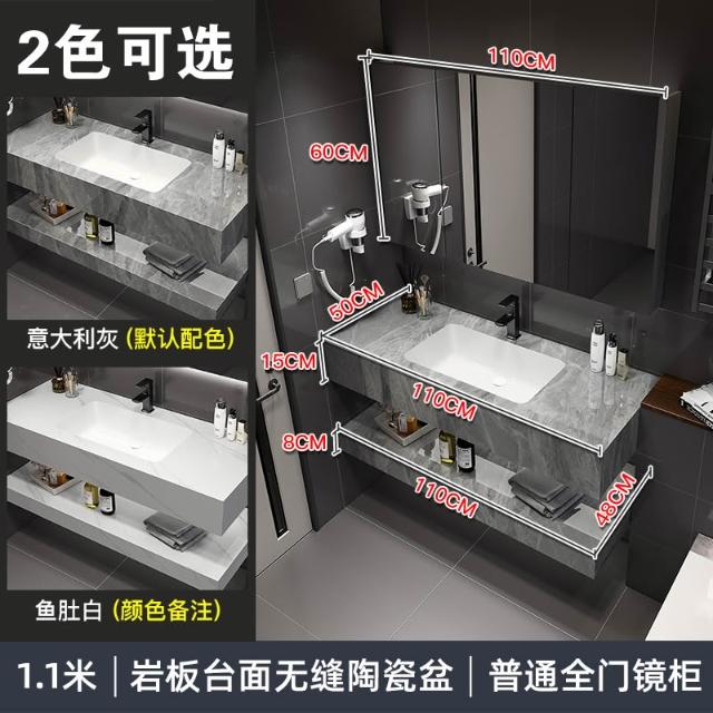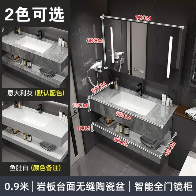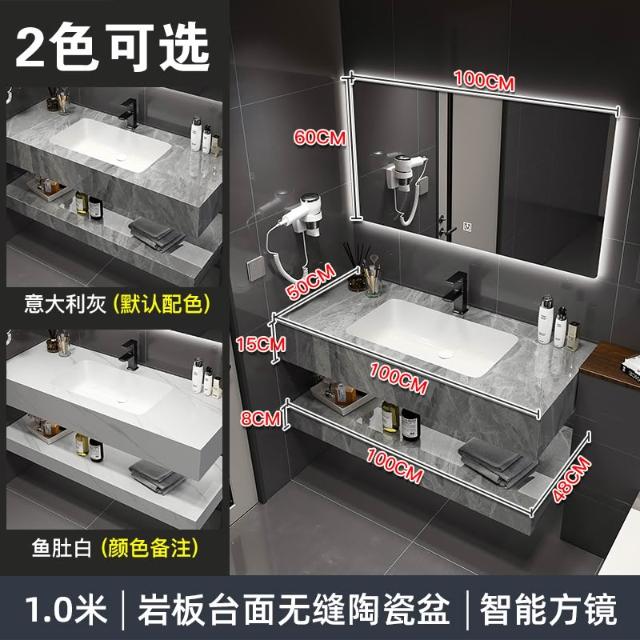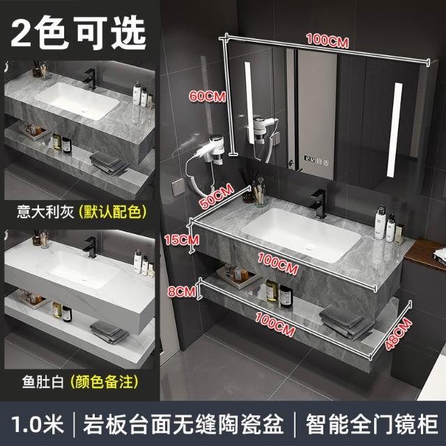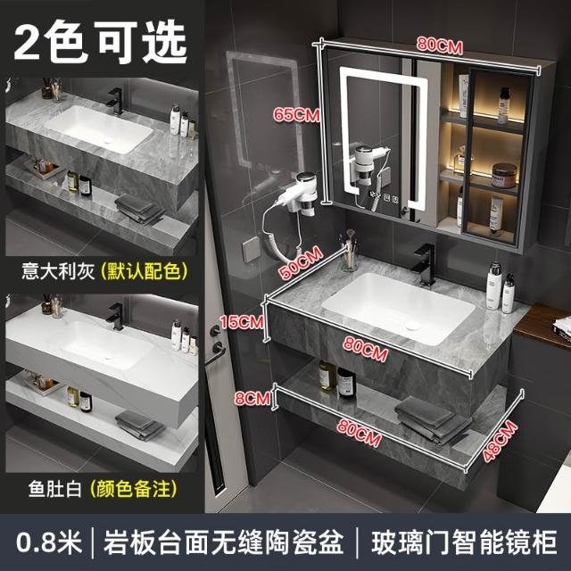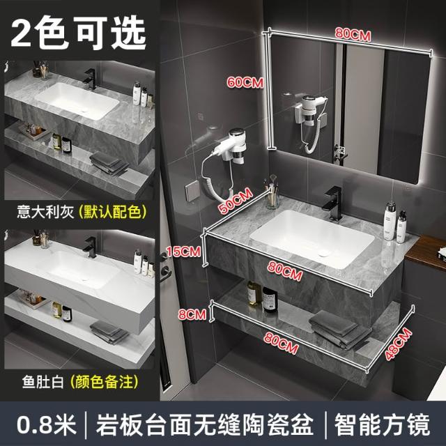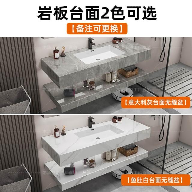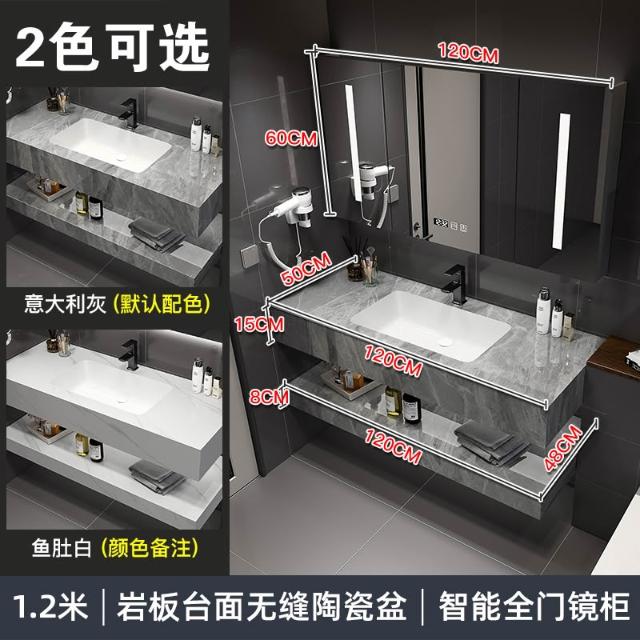 現代岩板陶瓷無縫拼接一體盆浴室櫃組合衛生間洗漱臺洗手盆洗臉盆