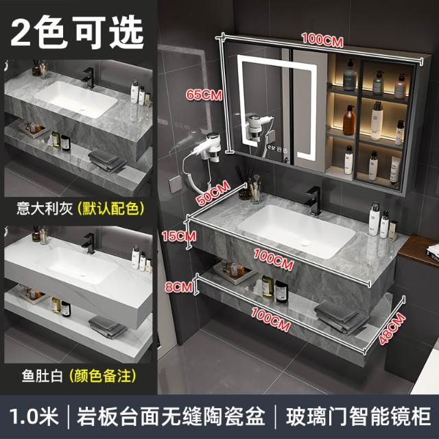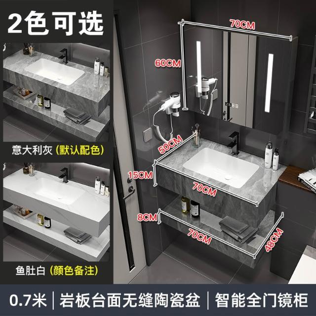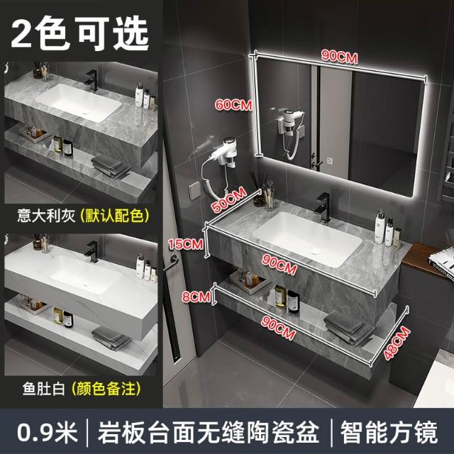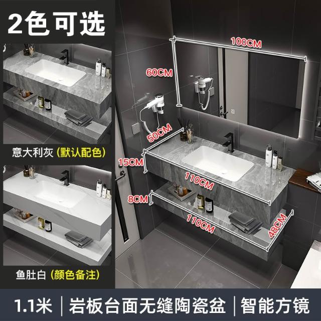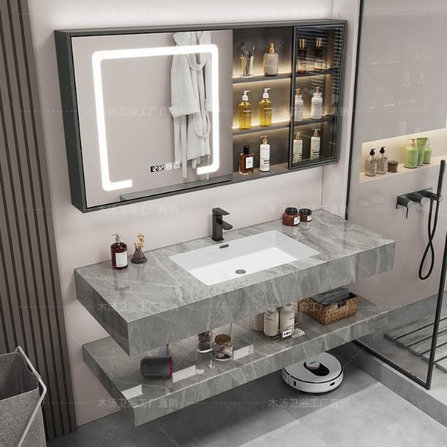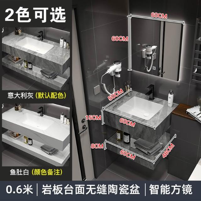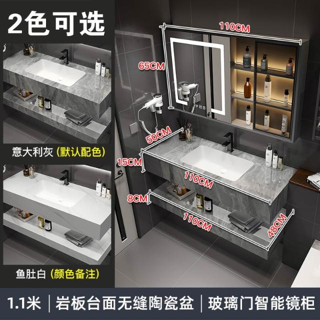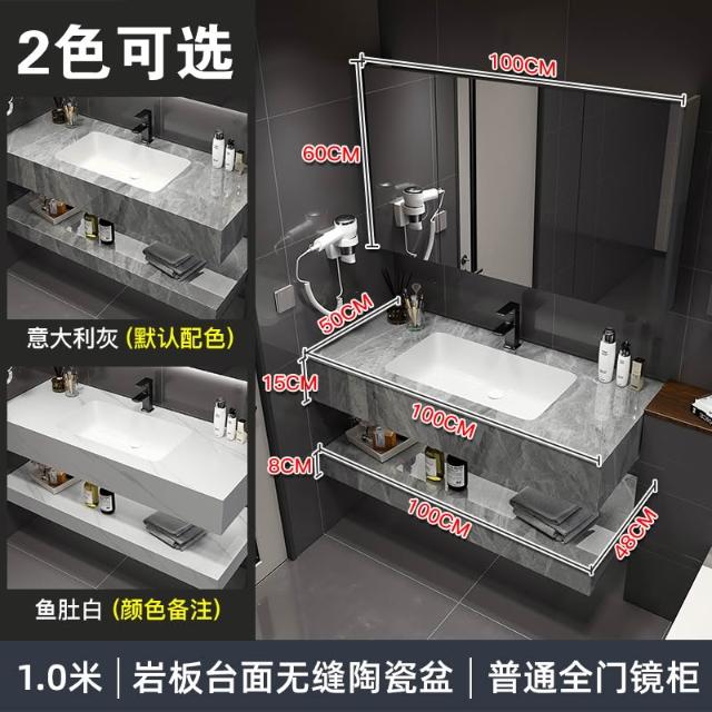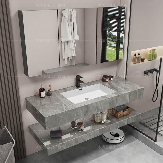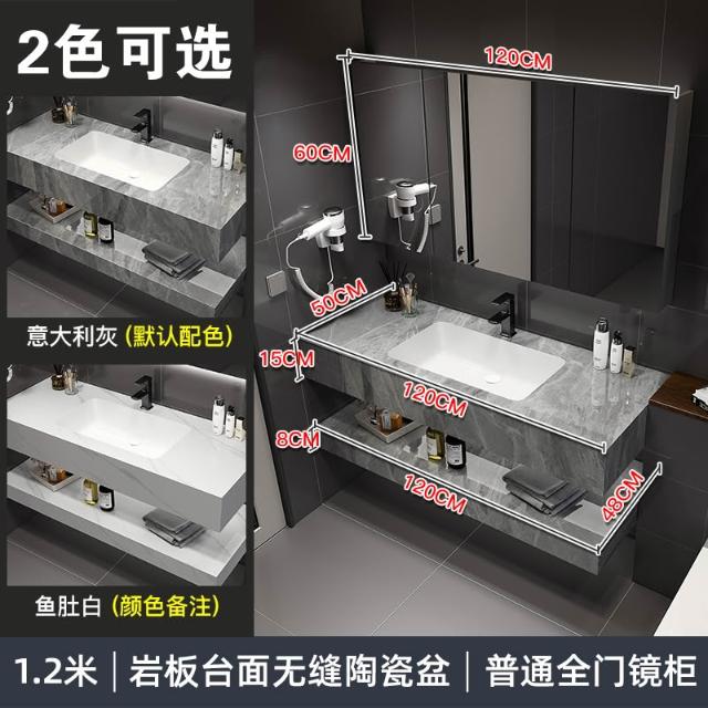 現代岩板陶瓷無縫拼接一體盆浴室櫃組合衛生間洗漱臺洗手盆洗臉盆