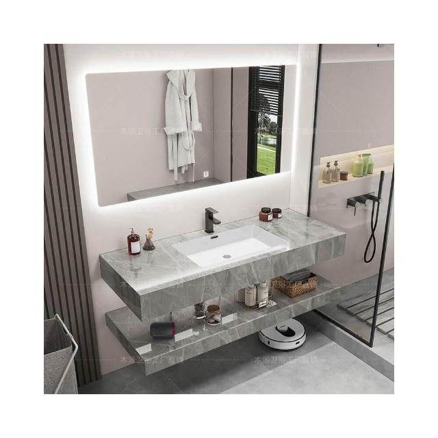 現代岩板陶瓷無縫拼接一體盆浴室櫃組合衛生間洗漱臺洗手盆洗臉盆