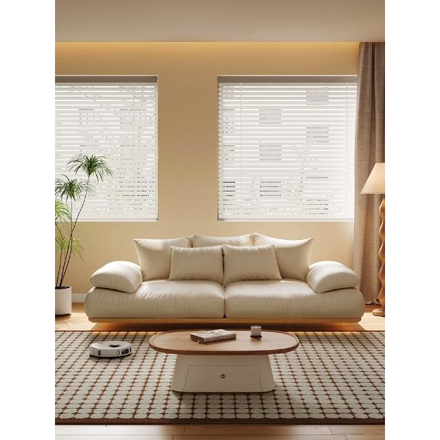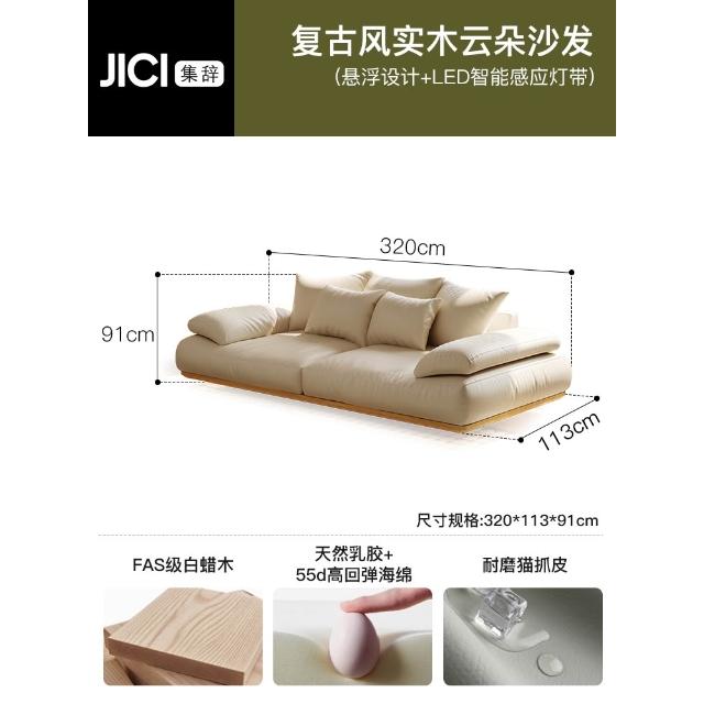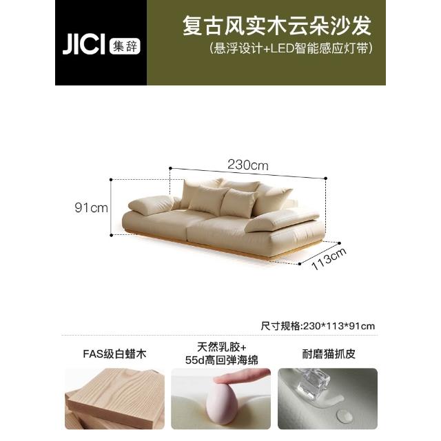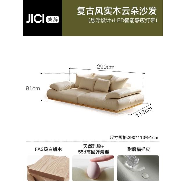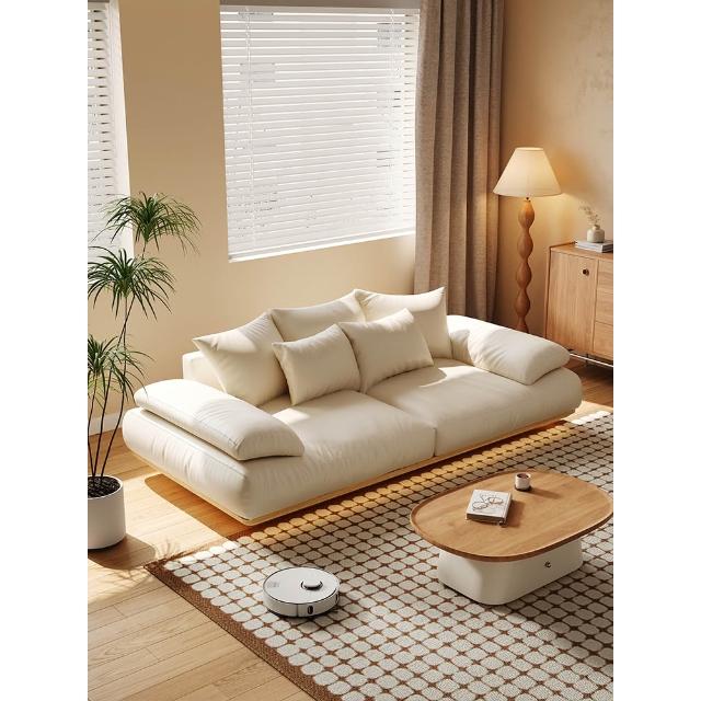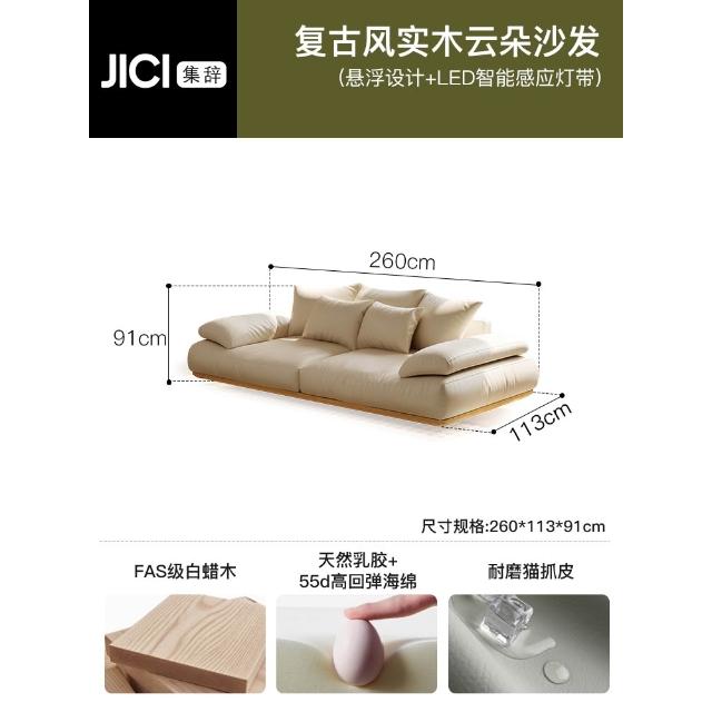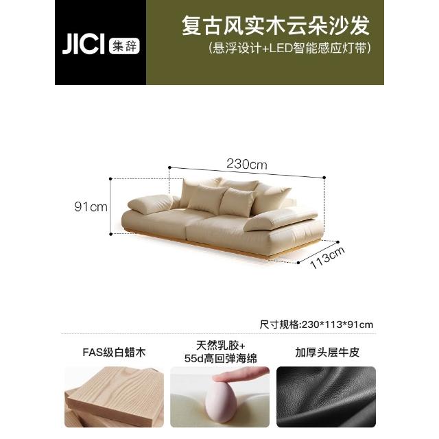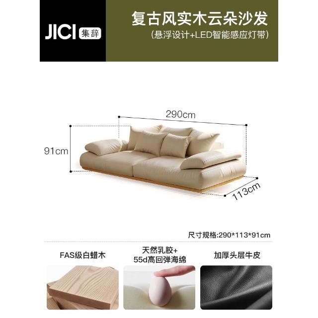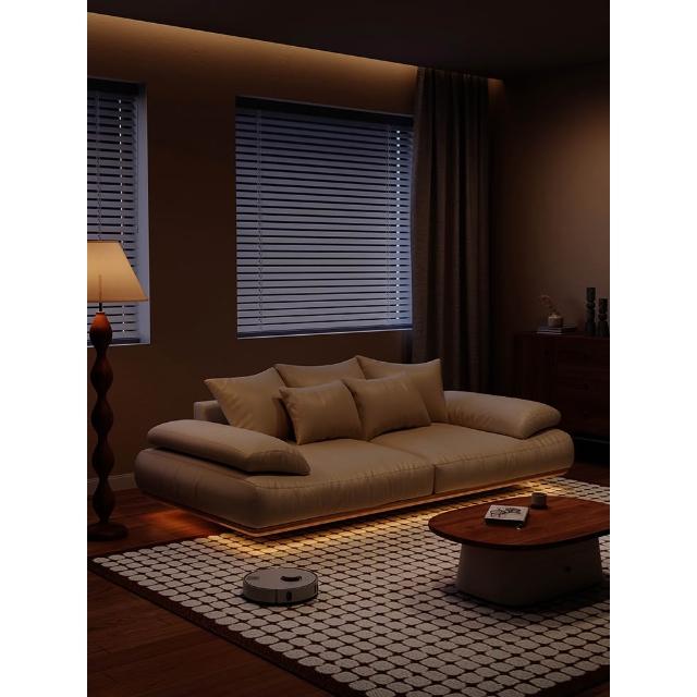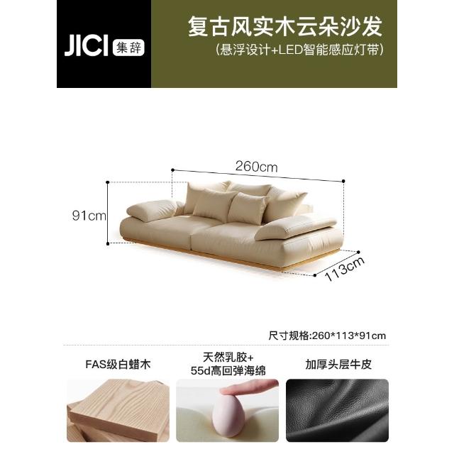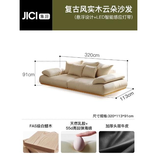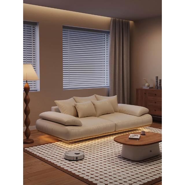 原木風懸浮柔光沙發直排小戶型客廳真皮沙發日系簡約三人位
