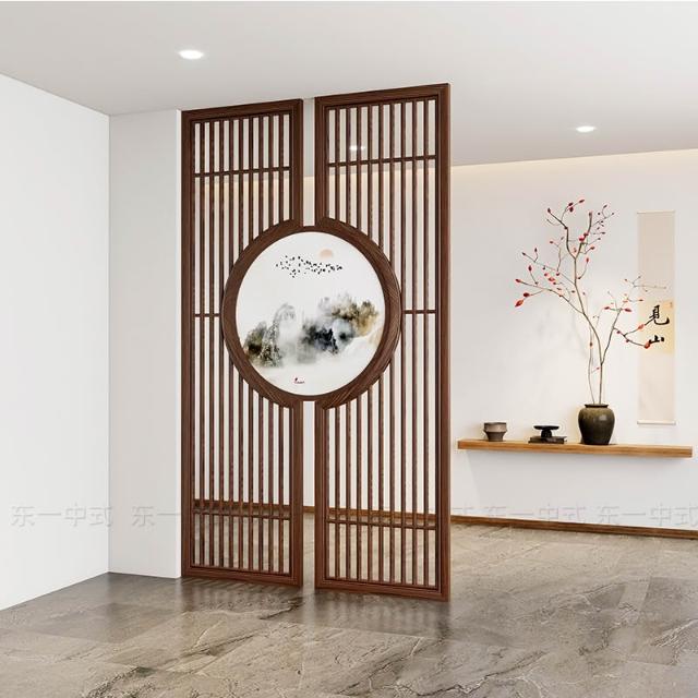 新中式實木屏風隔斷推拉移門客廳臥室遮擋入戶玄關花格木格柵定制