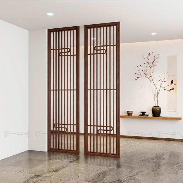 新中式實木屏風隔斷推拉移門客廳臥室遮擋入戶玄關花格木格柵定制