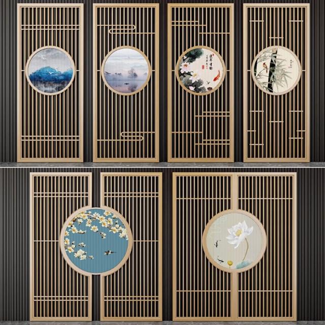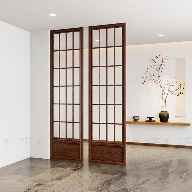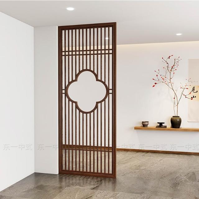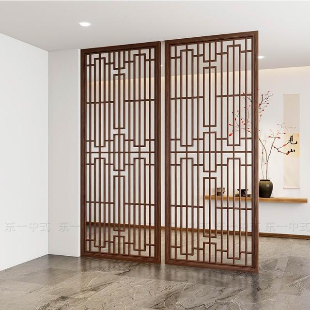 新中式實木屏風隔斷推拉移門客廳臥室遮擋入戶玄關花格木格柵定制