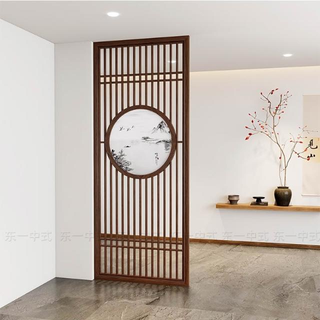 新中式實木屏風隔斷推拉移門客廳臥室遮擋入戶玄關花格木格柵定制