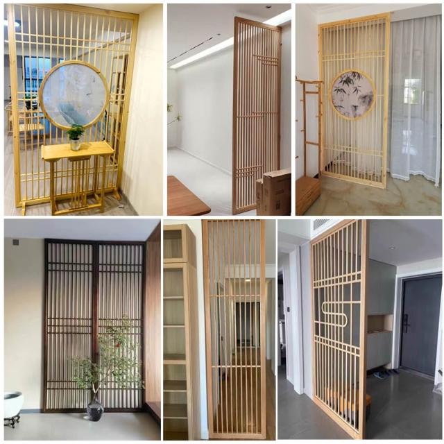 新中式實木屏風隔斷推拉移門客廳臥室遮擋入戶玄關花格木格柵定制