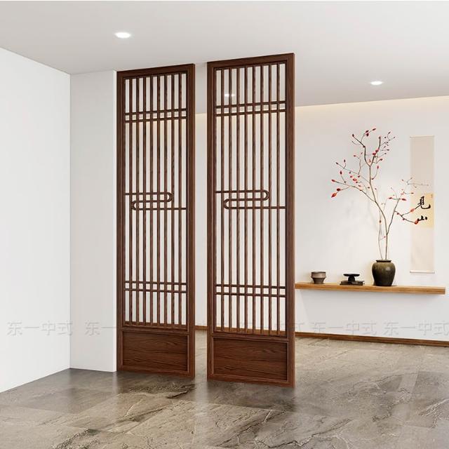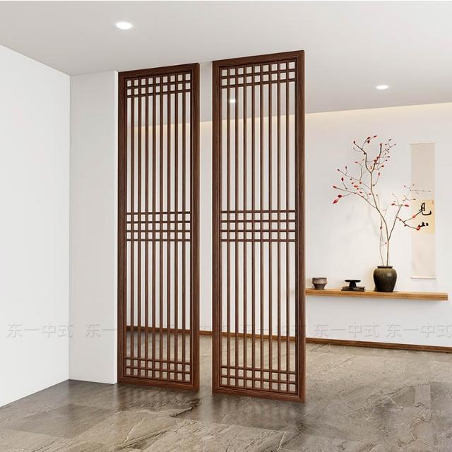 新中式實木屏風隔斷推拉移門客廳臥室遮擋入戶玄關花格木格柵定制