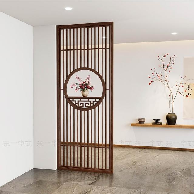 新中式實木屏風隔斷推拉移門客廳臥室遮擋入戶玄關花格木格柵定制