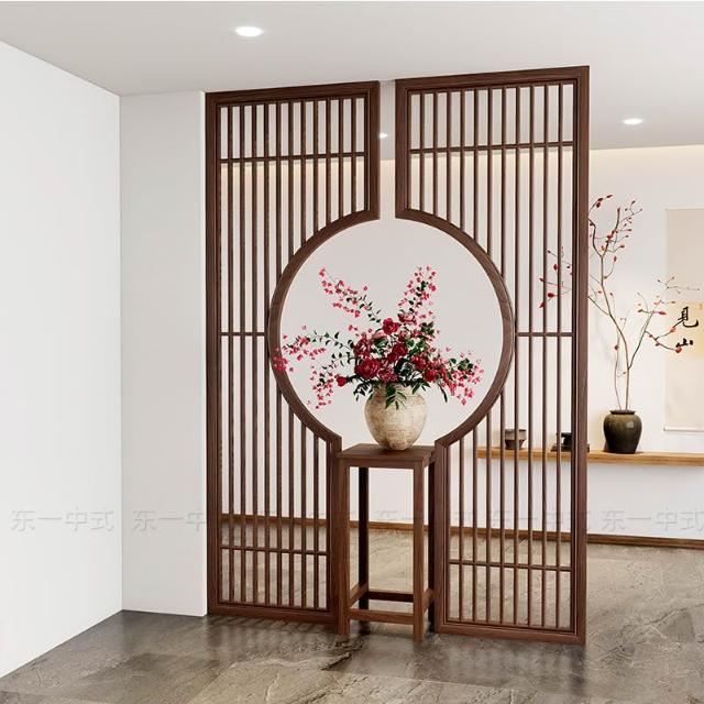 新中式實木屏風隔斷推拉移門客廳臥室遮擋入戶玄關花格木格柵定制