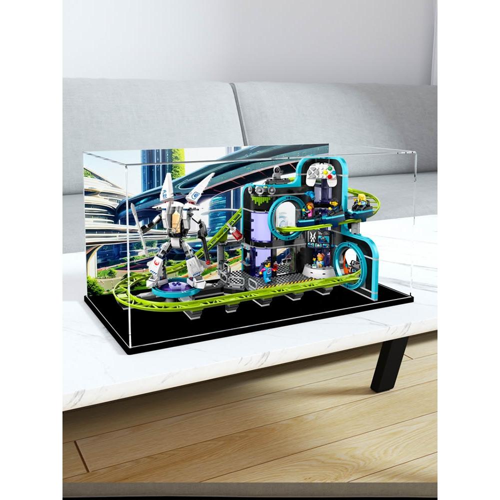 亞克力防塵盒適用樂高60421 機器人世界過山車遊樂園模型罩展示盒