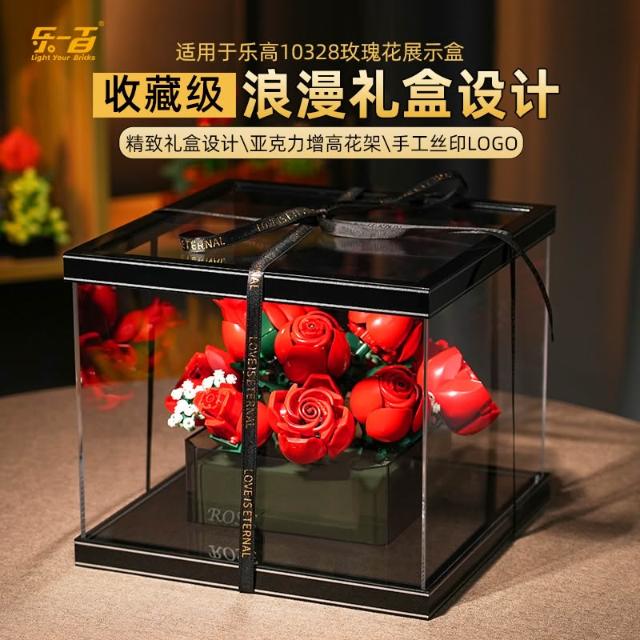 適用樂高10328玫瑰花束永生花積木亞克力展示盒情人節