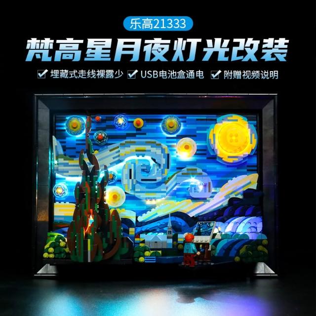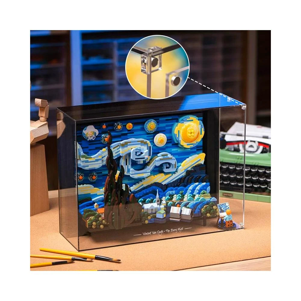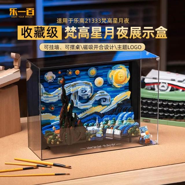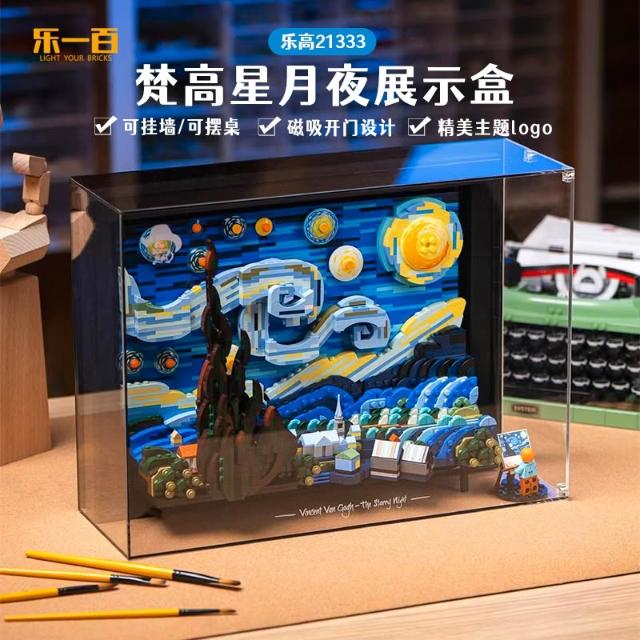 適用樂高21333梵高星月夜展示盒積木透明防塵罩星空燈飾掛牆