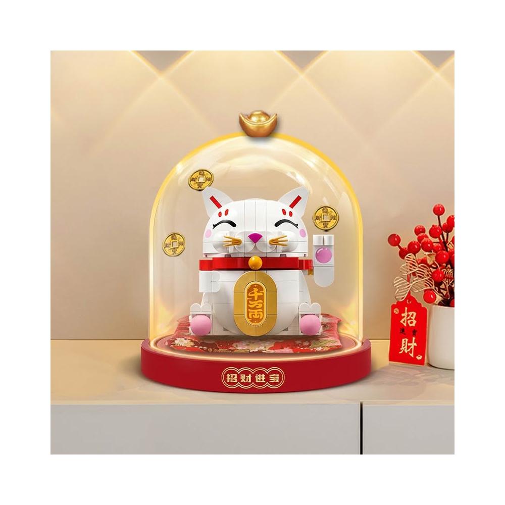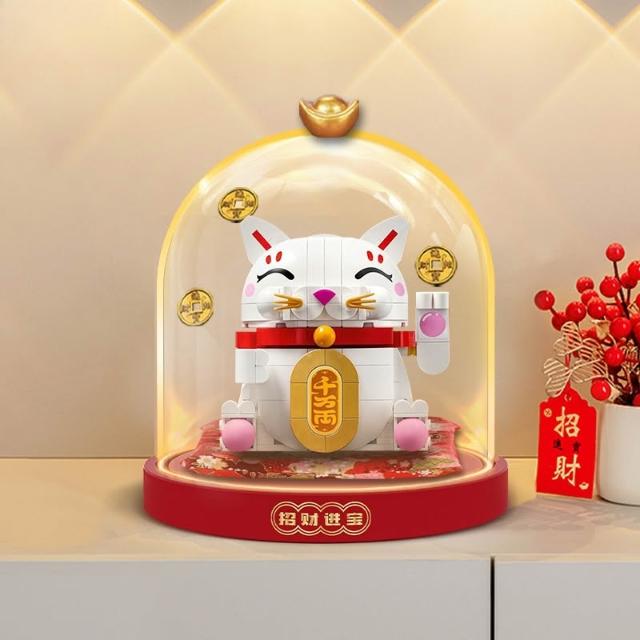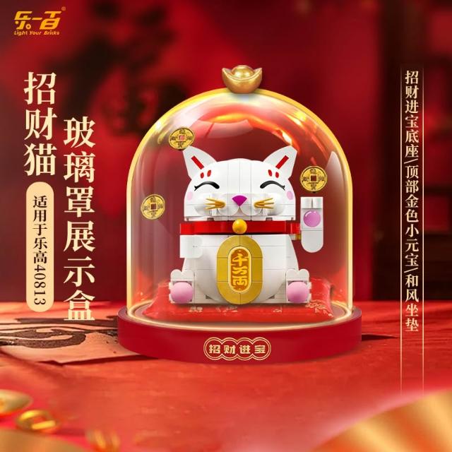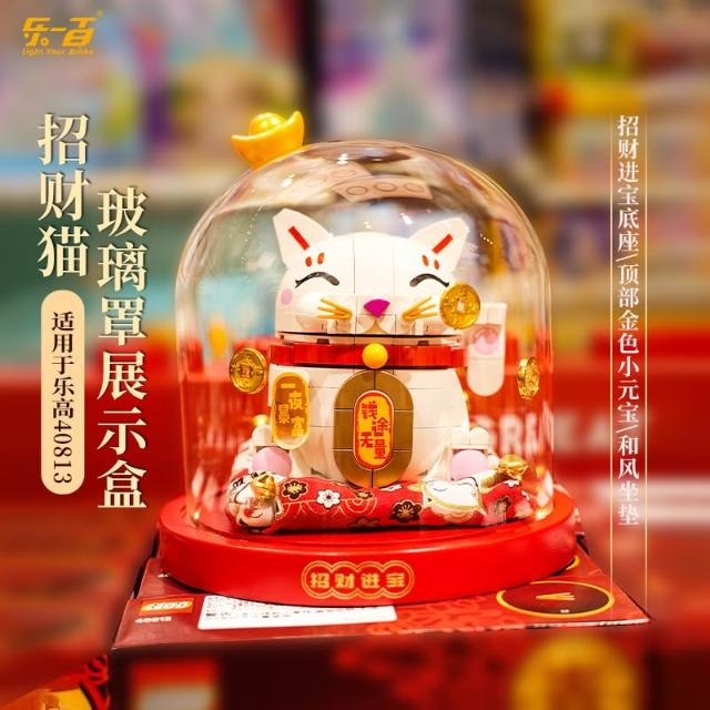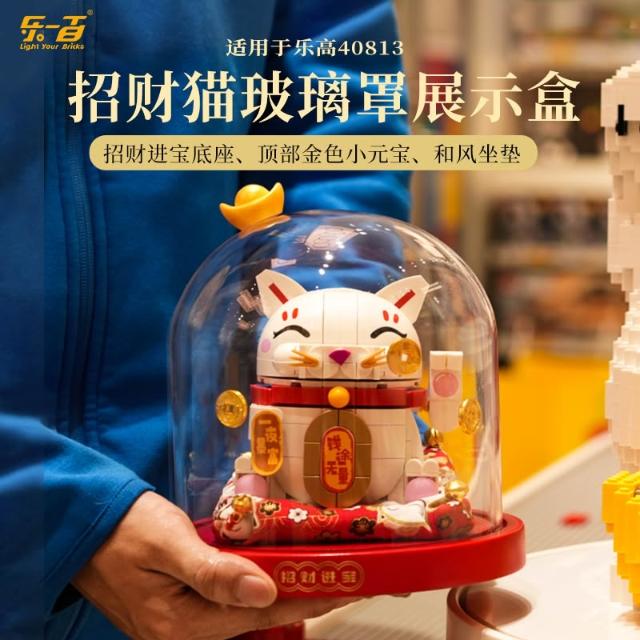 適用樂高春節系列40813招財貓展示盒透明玻璃罩燈光款