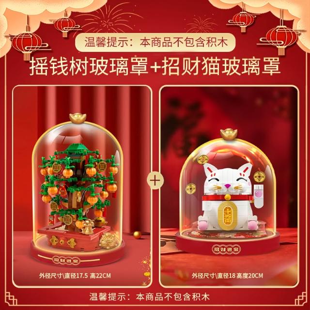 適用樂高春節系列40813招財貓展示盒透明玻璃罩燈光款