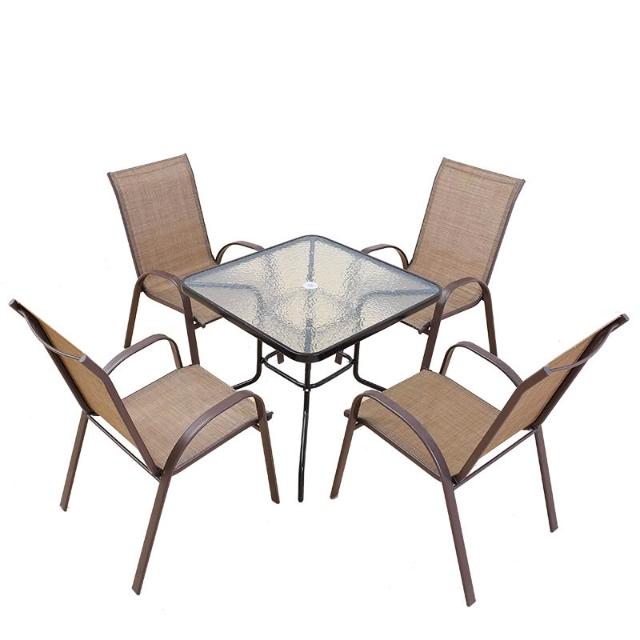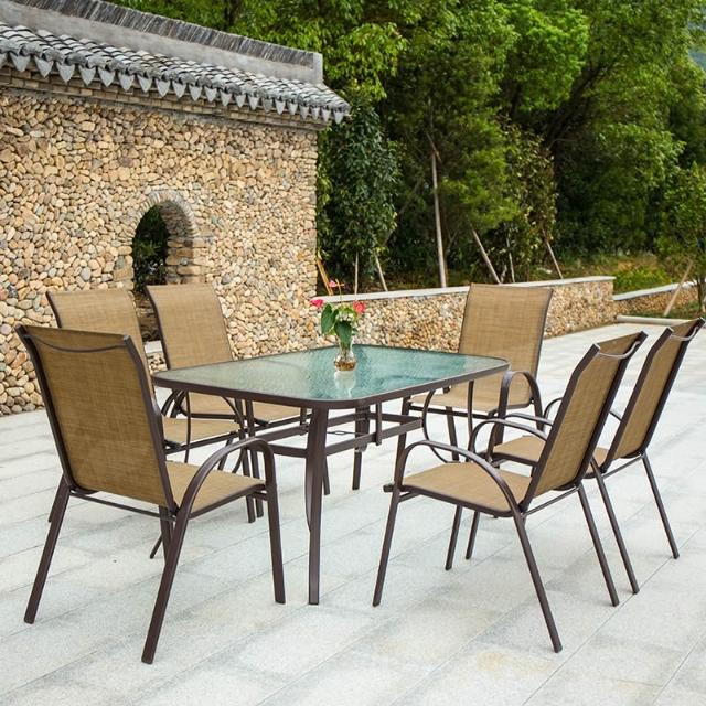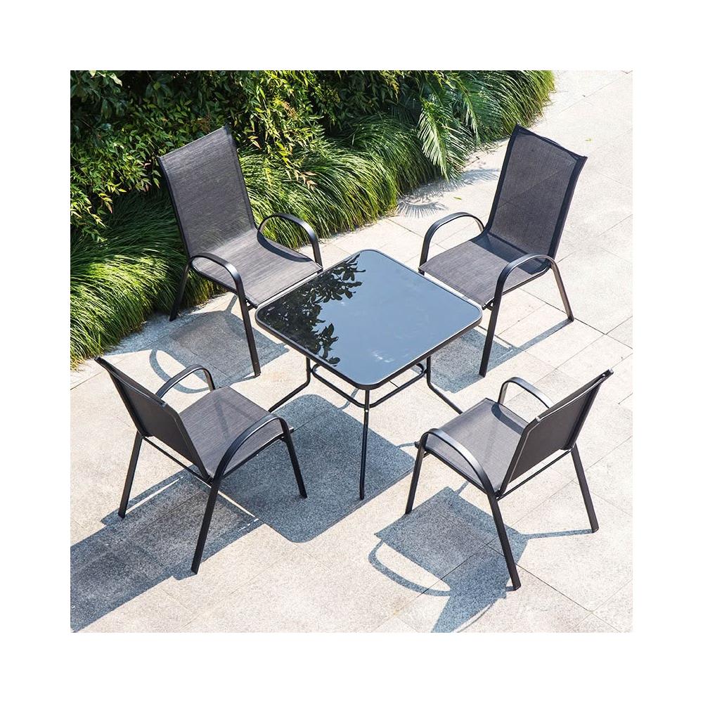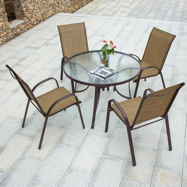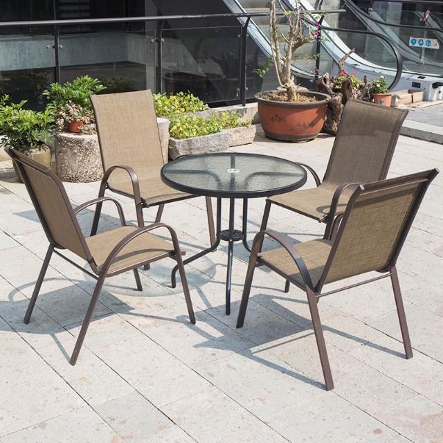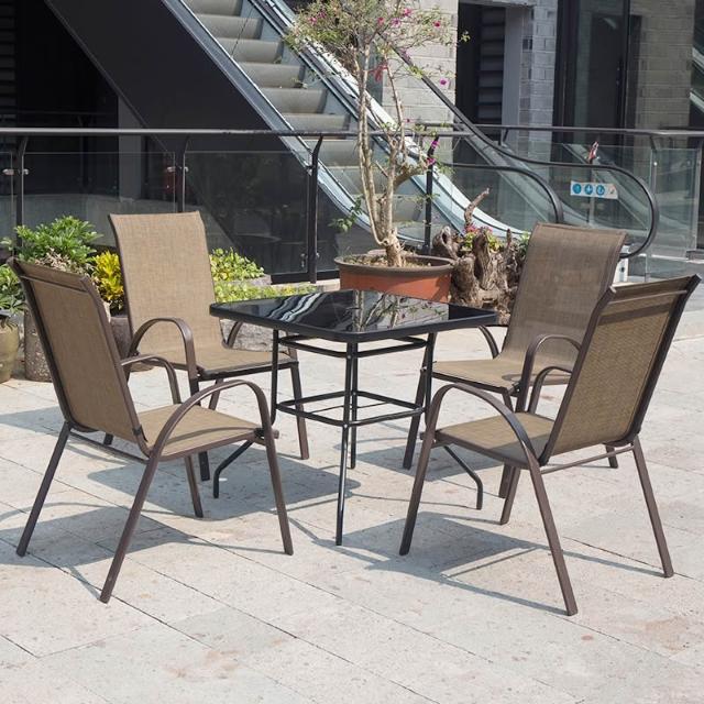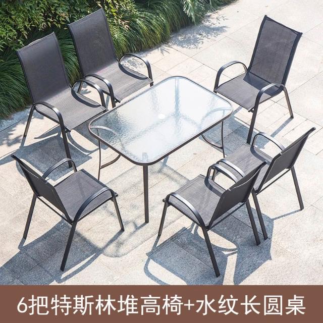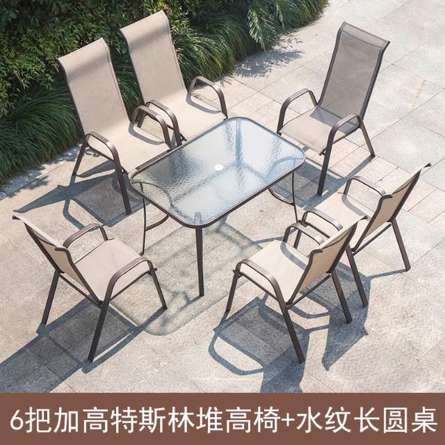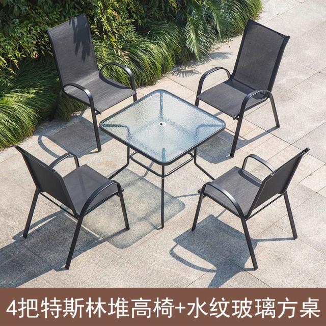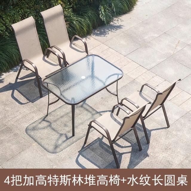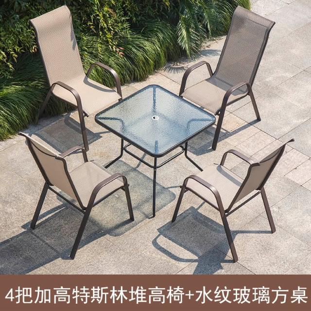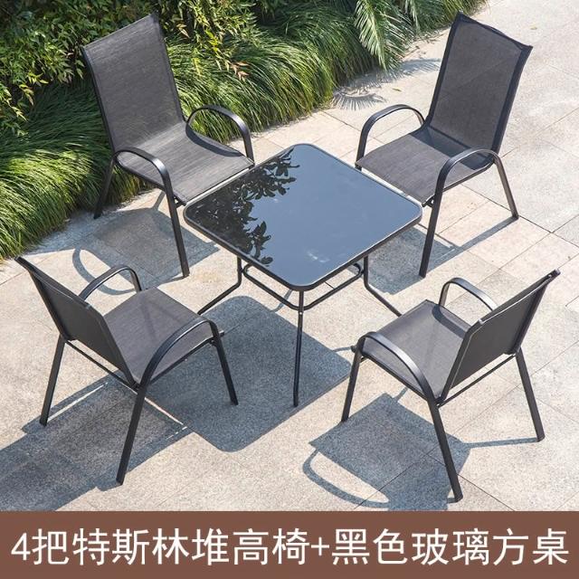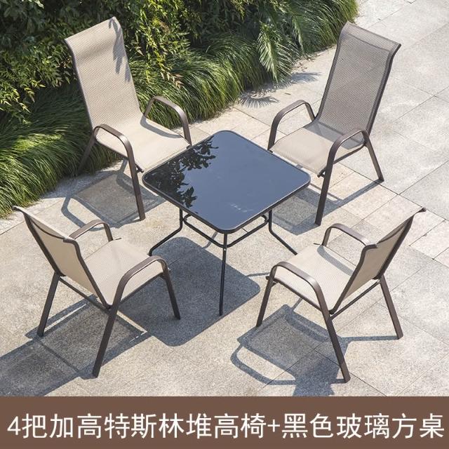 戶外椅子庭院露天茶坊桌椅室外鐵藝扶手靠背椅特斯林堆高椅休閒椅