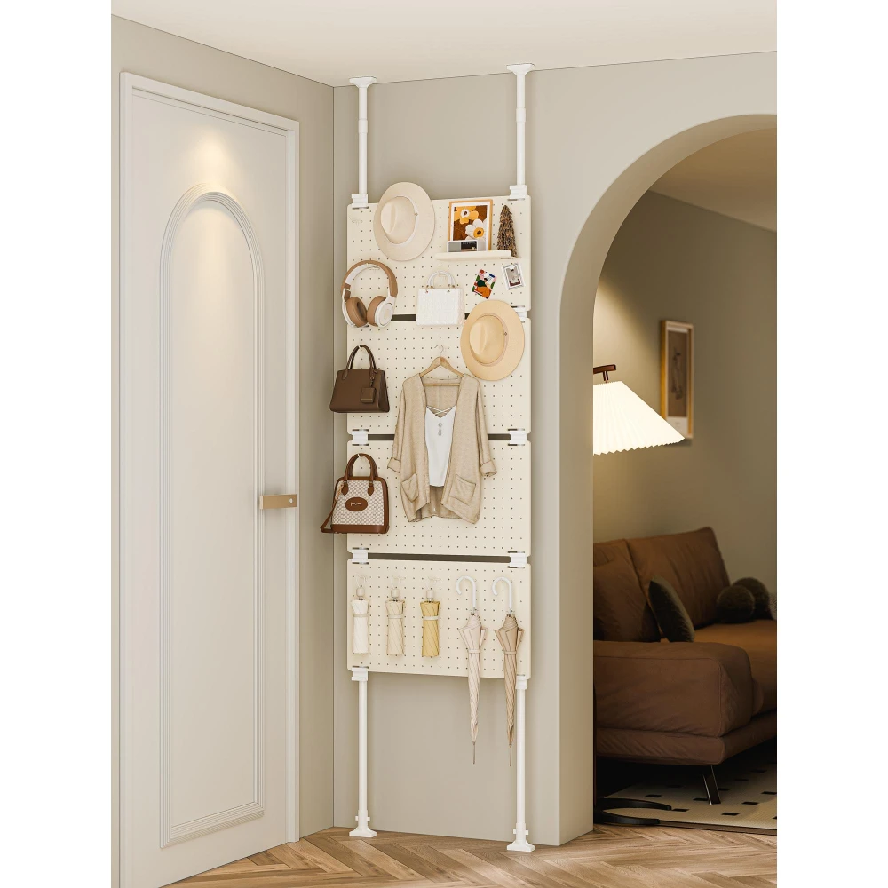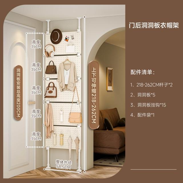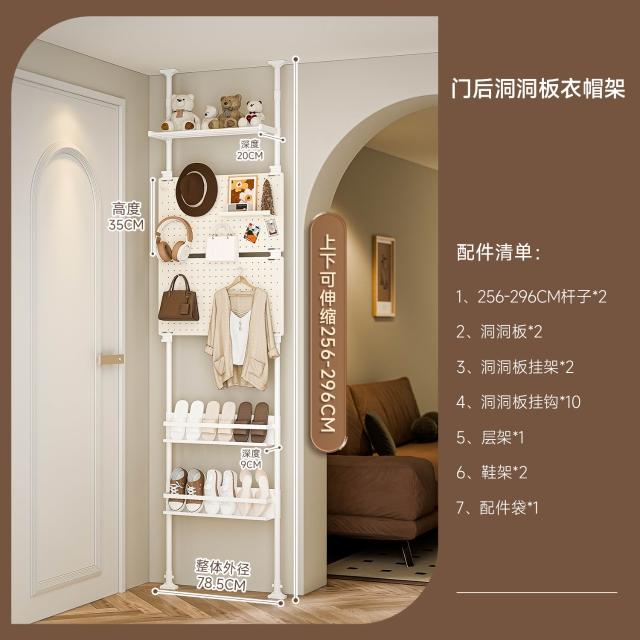 門後置物架洞洞板一體隔斷衣帽架入戶玄關頂天立地掛衣架薄免打孔
