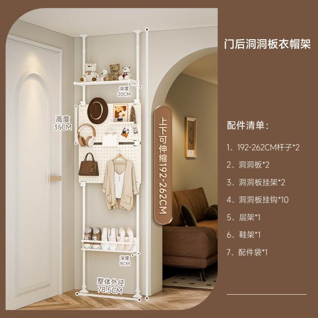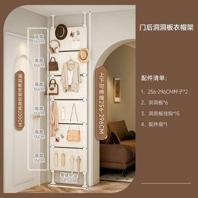 門後置物架洞洞板一體隔斷衣帽架入戶玄關頂天立地掛衣架薄免打孔