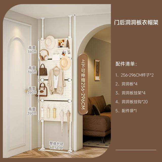 門後置物架洞洞板一體隔斷衣帽架入戶玄關頂天立地掛衣架薄免打孔