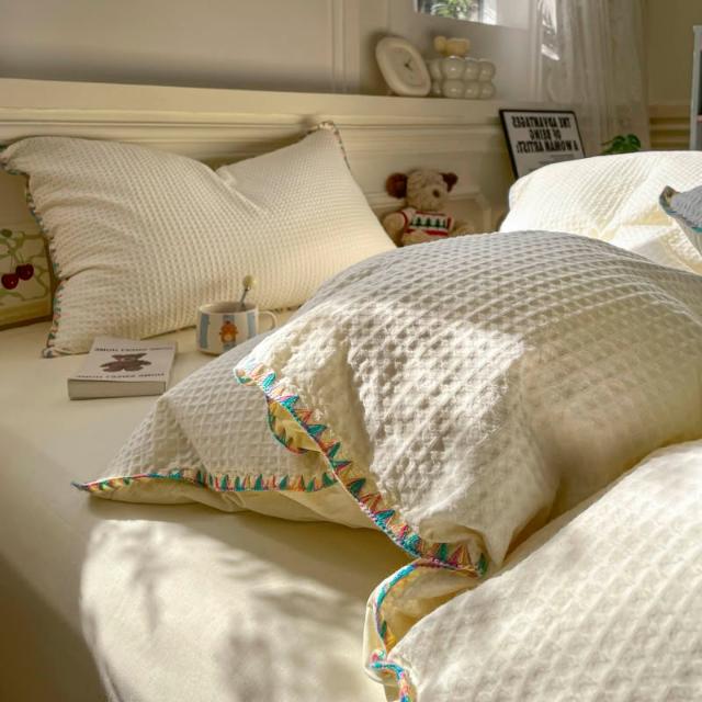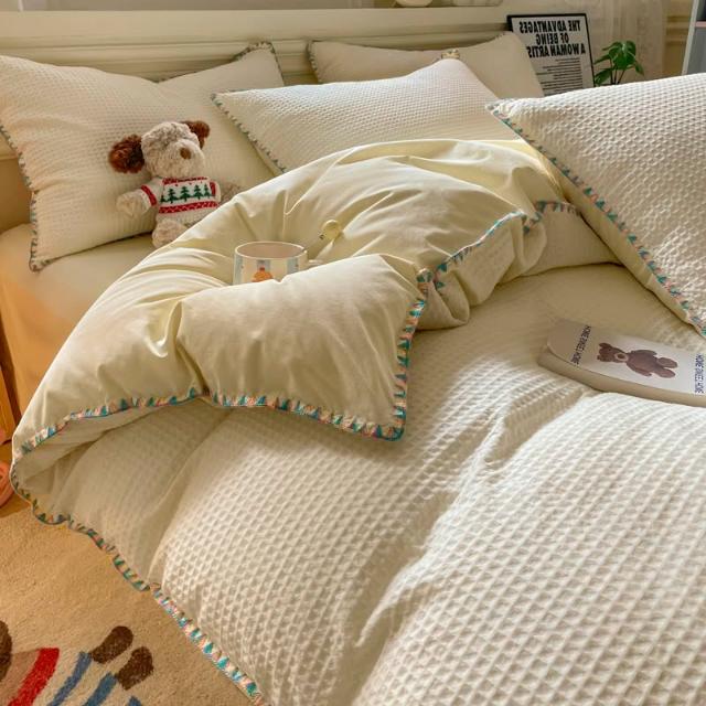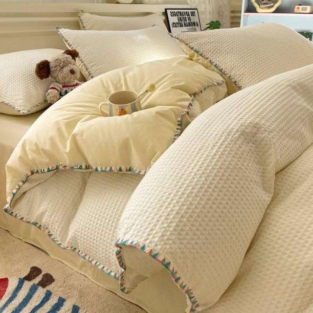 純棉華夫格床上四件套全棉2025新款秋冬季加厚被套學生床單三件套