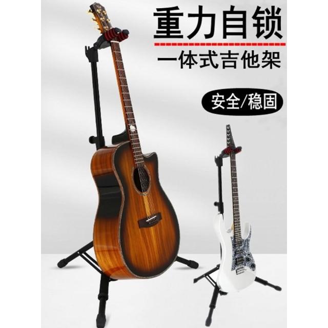 重力自鎖吉他架子立式支架琴架地架貝斯民謠木電吉他通用可掛琴包