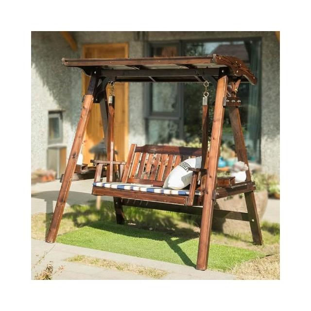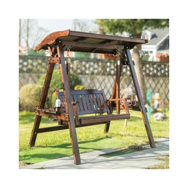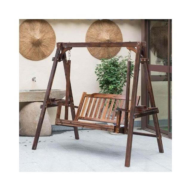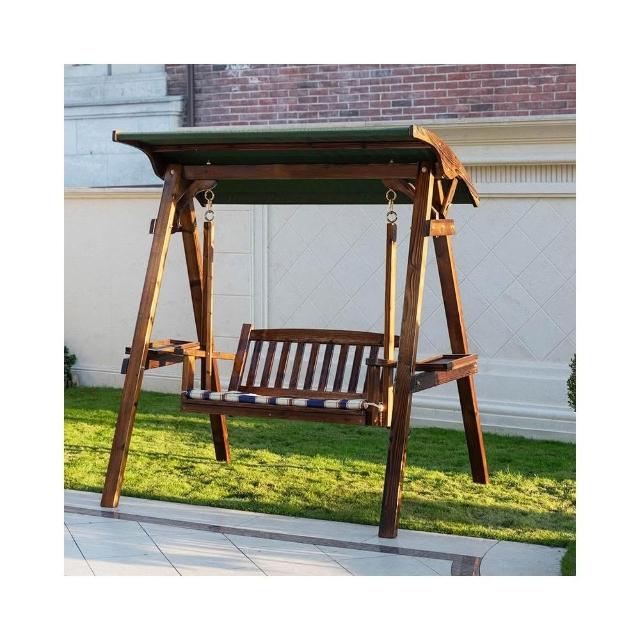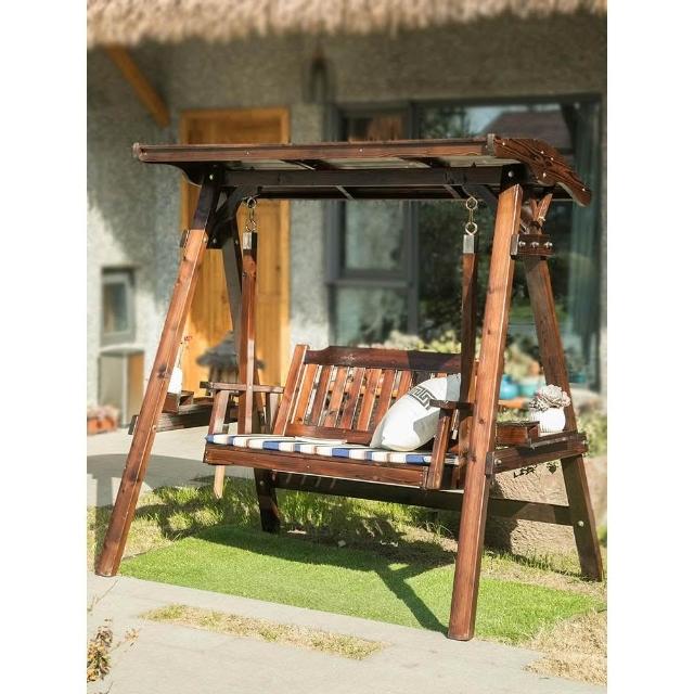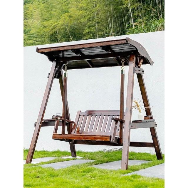 戶外秋千防腐實木成人吊椅室內外碳化搖椅別墅庭院木頂棚秋千椅子