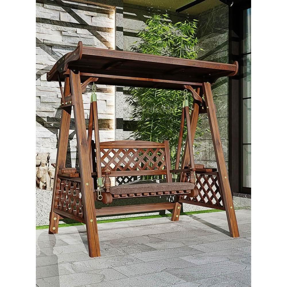 秋千戶外庭院實木搖椅別墅露臺吊椅防腐木蕩秋千雙人成人吊椅吊床