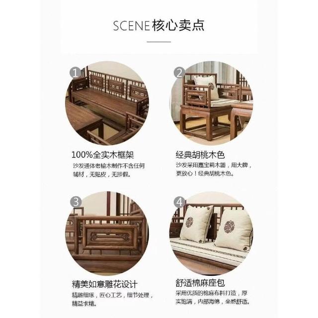 新中式實木沙發老榆木現代簡約冬夏兩用傢俱客廳貴妃沙發小戶型