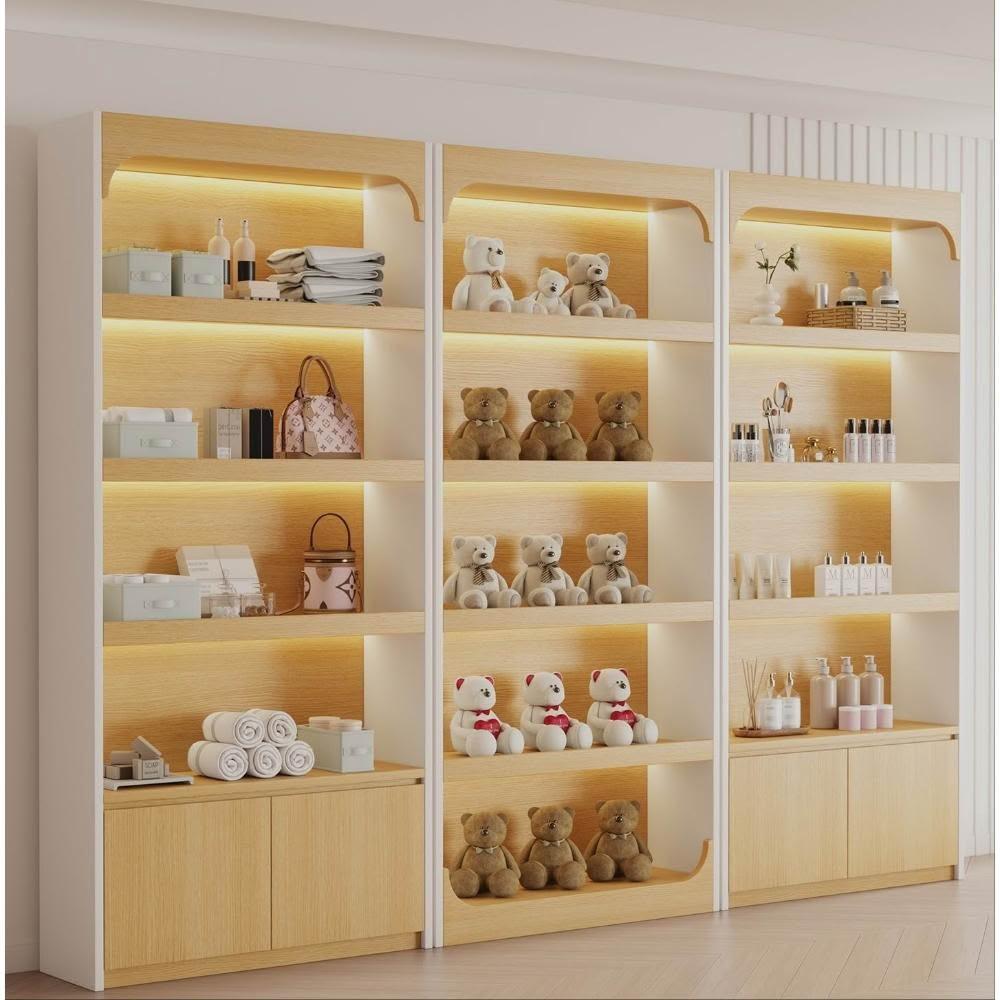 原木風化妝品展示櫃產品美容院美甲陳列寵物護膚品置物架多層貨架