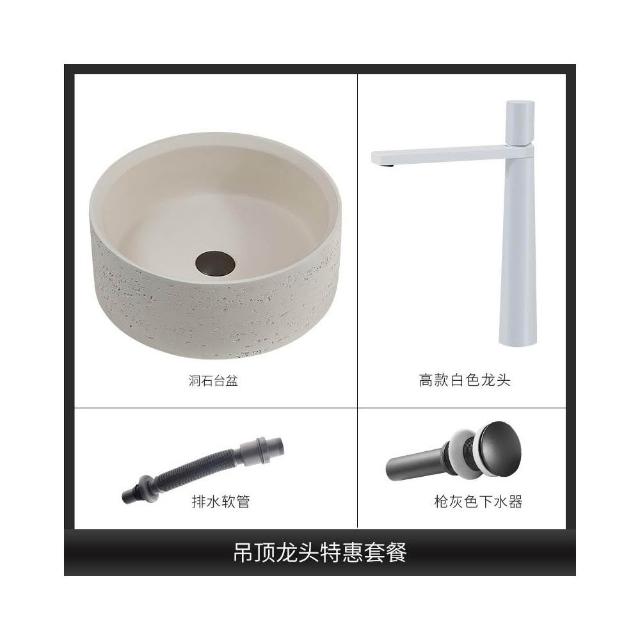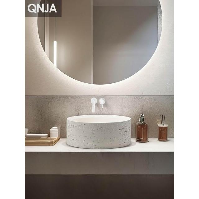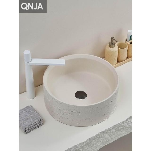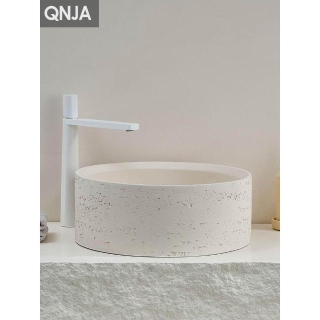 侘寂風臺上盆洗手盆設計師創意高端面盆圓形衛生間洞石藝術洗臉盆