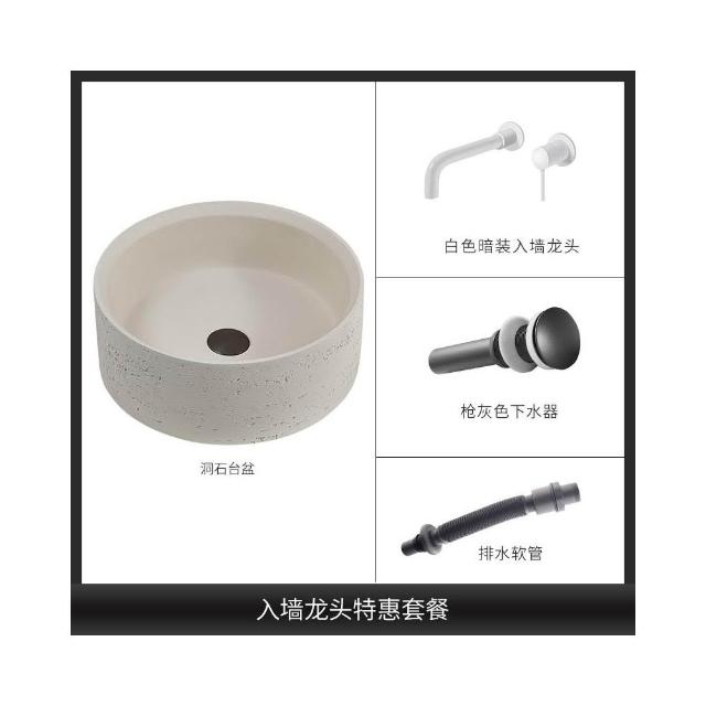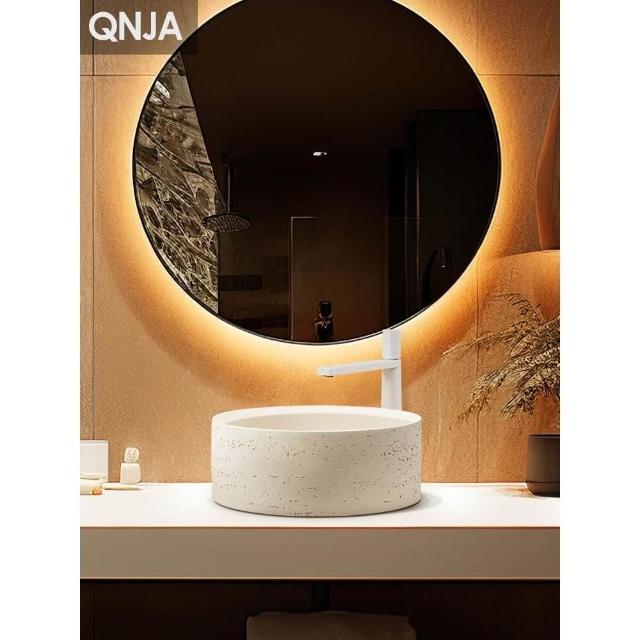 侘寂風臺上盆洗手盆設計師創意高端面盆圓形衛生間洞石藝術洗臉盆