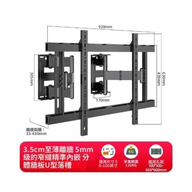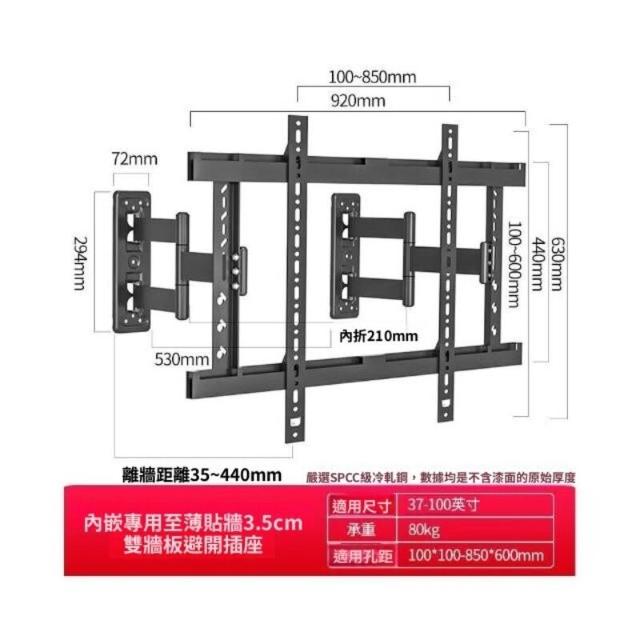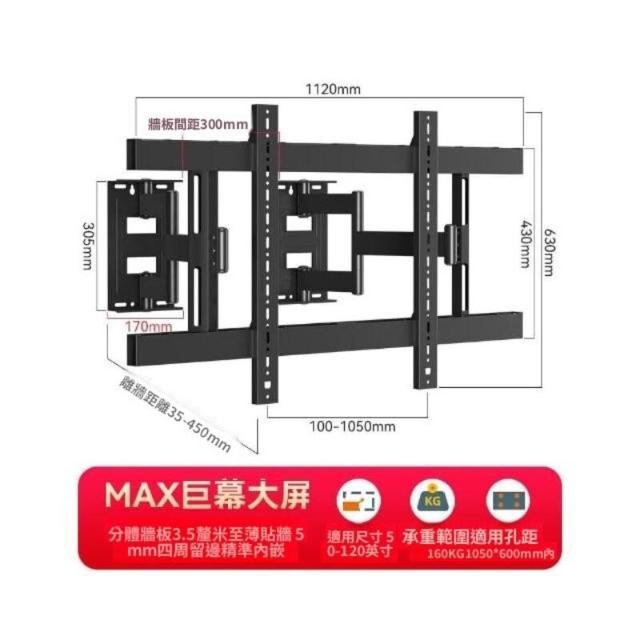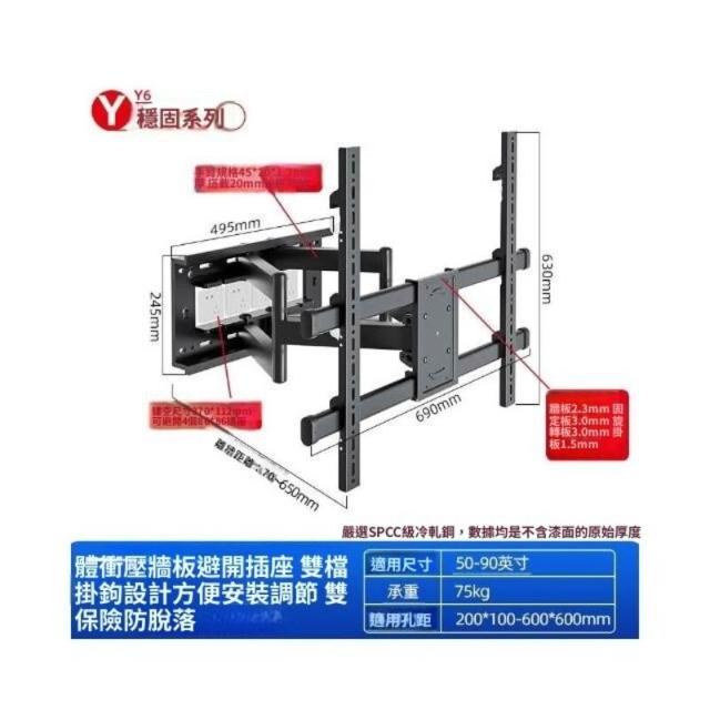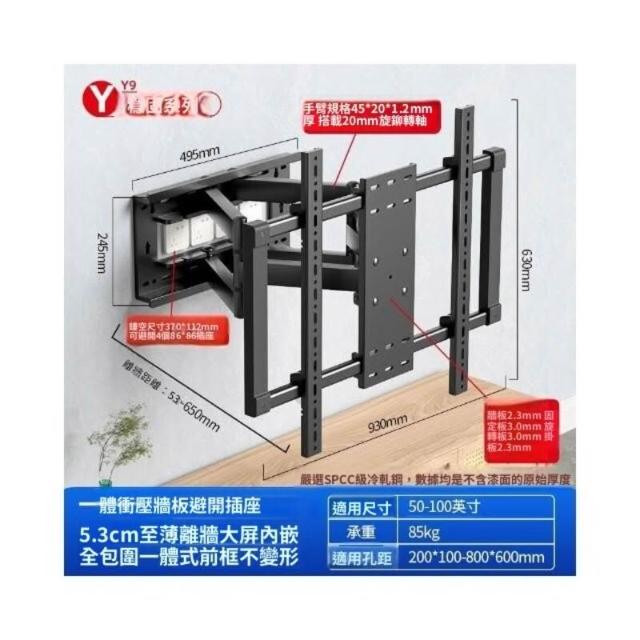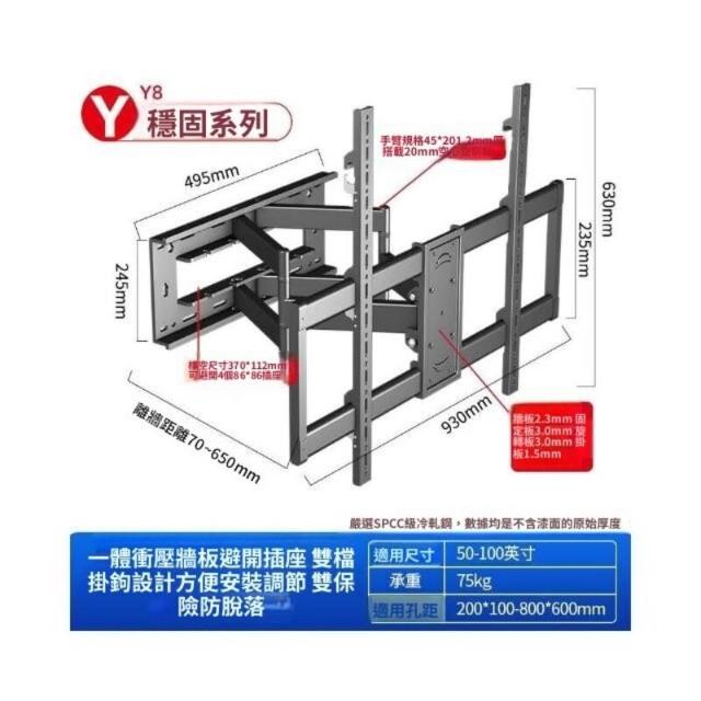 Y系列伸縮電視掛架適用於華為雷鳥75/85/98英寸嵌入式搖擺壁掛架