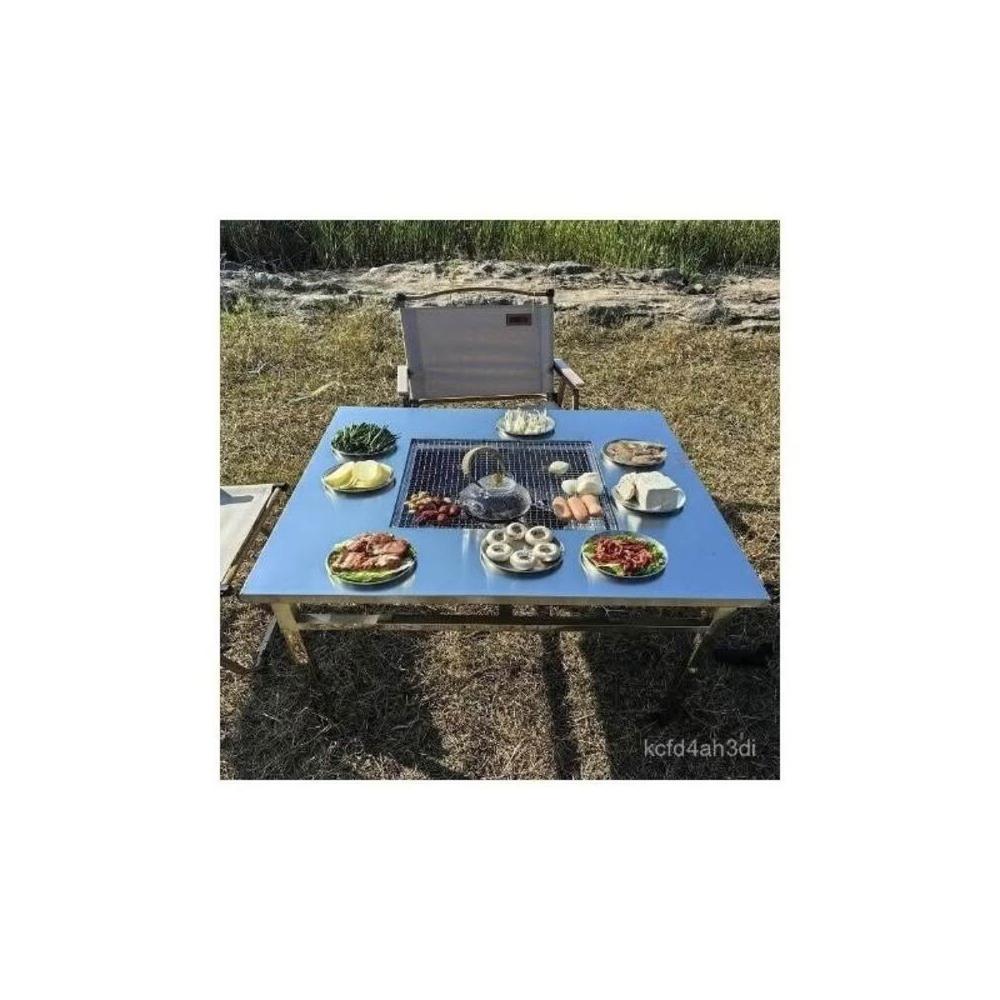 加厚不銹鋼燒烤桌 折疊擺攤燒烤桌 家用夜市露營庭院 戶外自助燒烤爐 野營木炭烤肉 燒烤店擺攤烤肉桌 燒烤