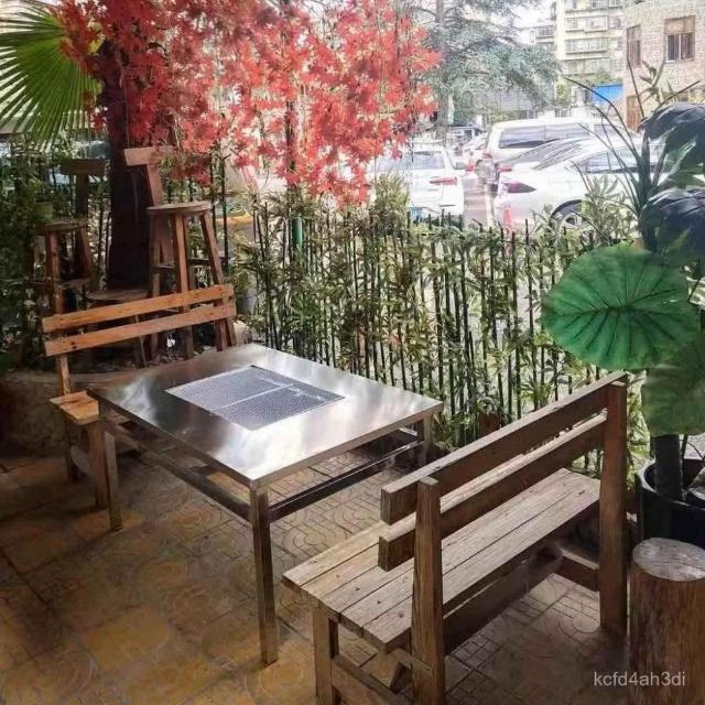 加厚不銹鋼燒烤桌 折疊擺攤燒烤桌 家用夜市露營庭院 戶外自助燒烤爐 野營木炭烤肉 燒烤店擺攤烤肉桌 燒烤