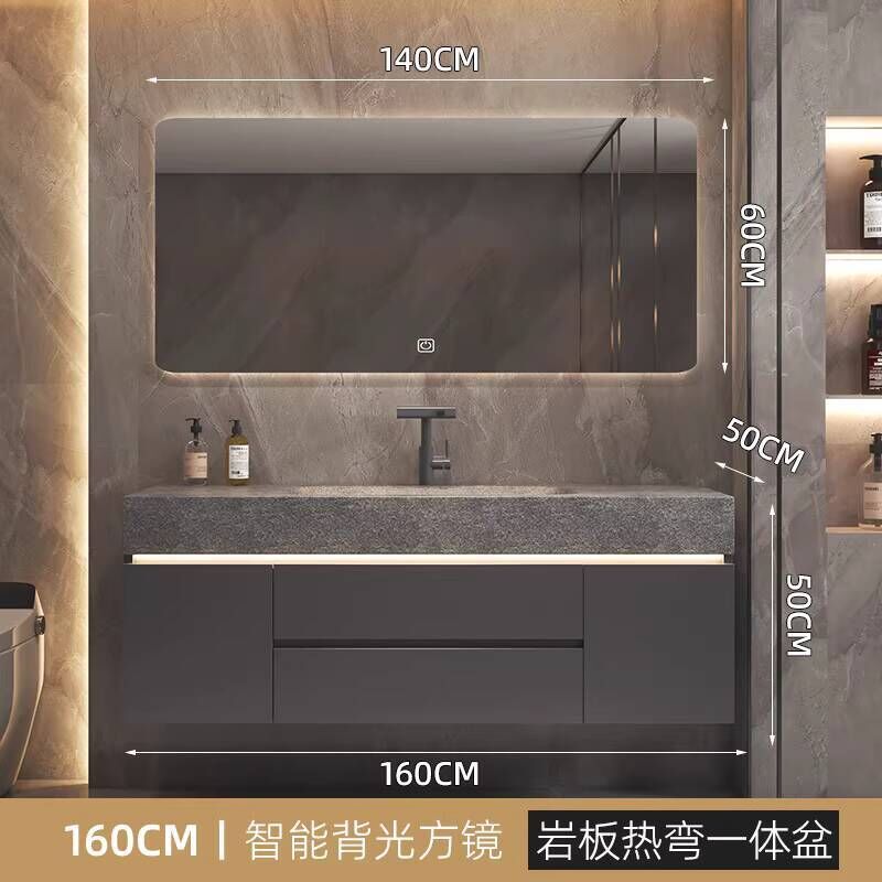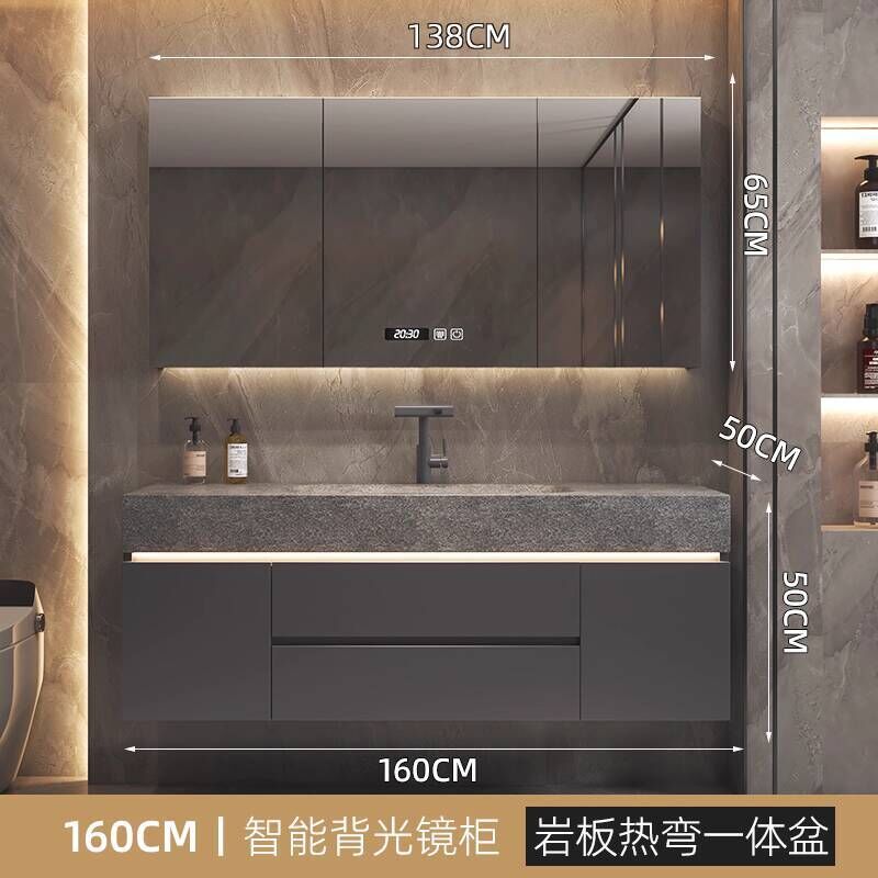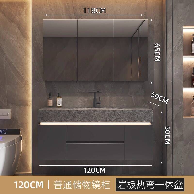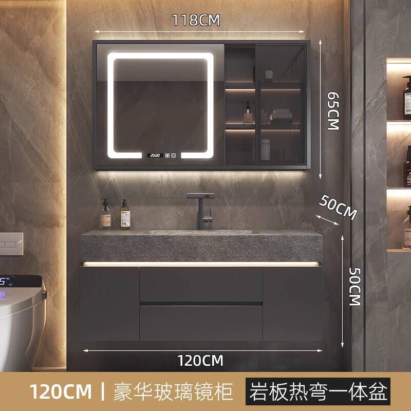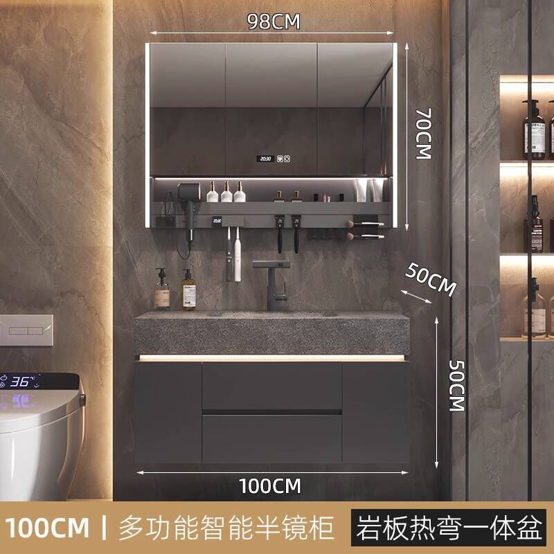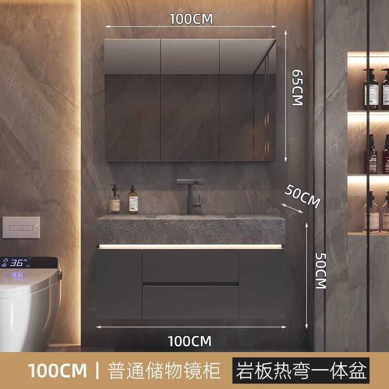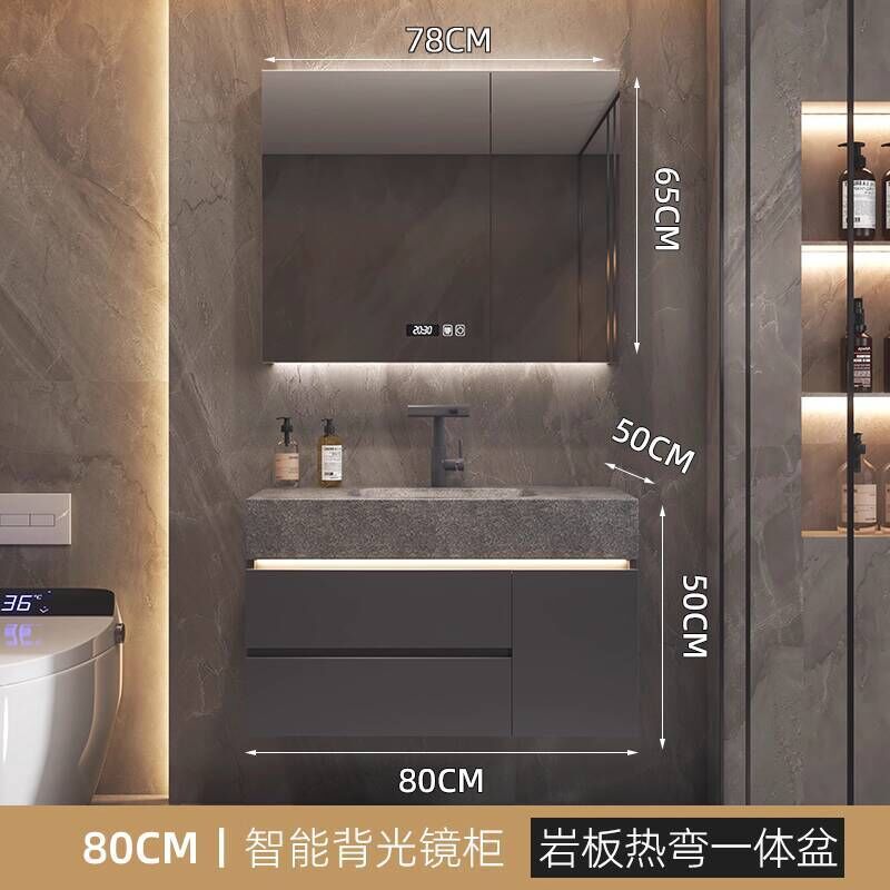 衛生間洗手臉盆池巖板熱彎一體盆浴室櫃組合衛浴櫃洗漱臺