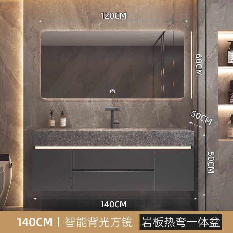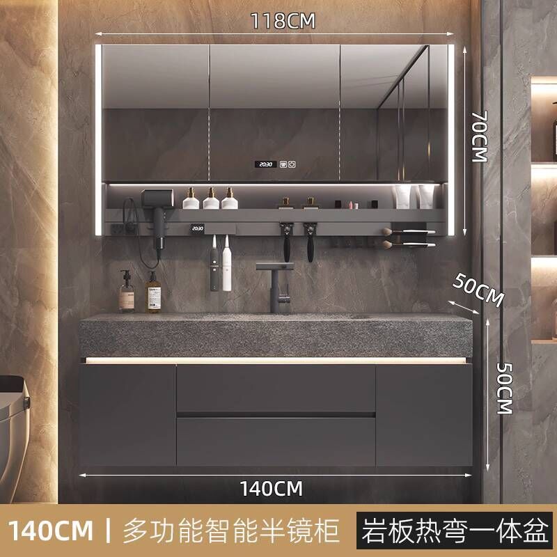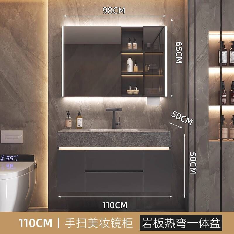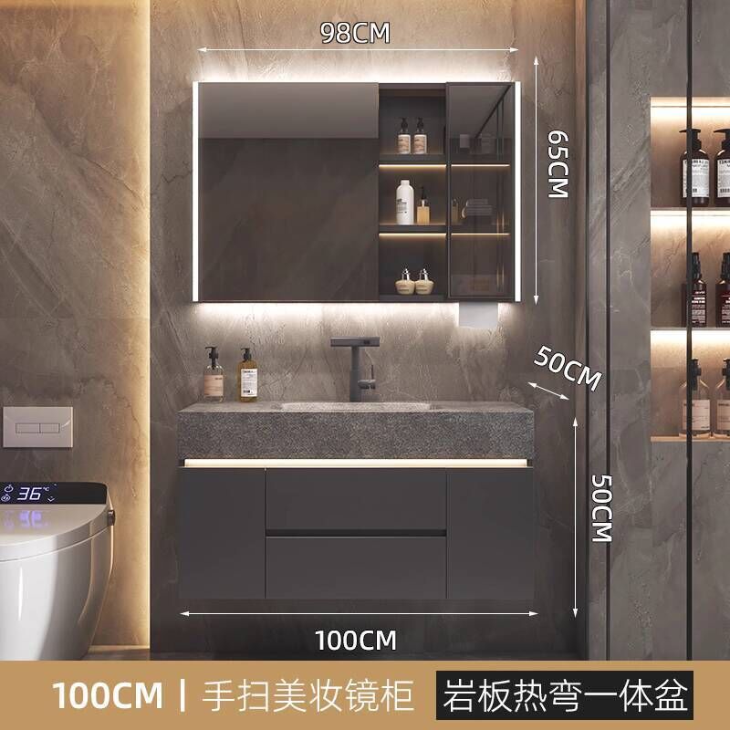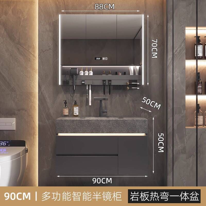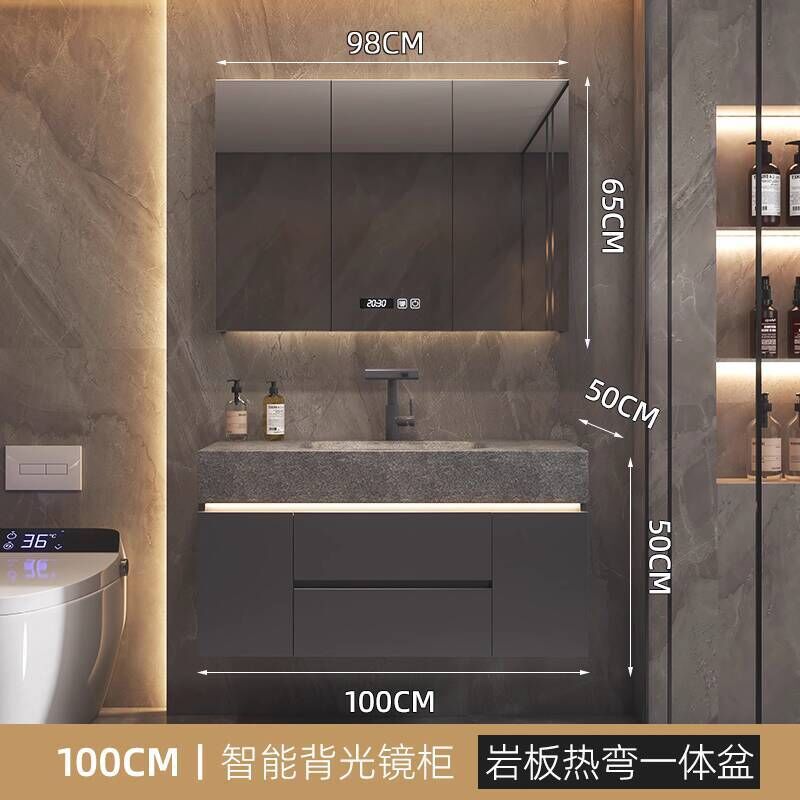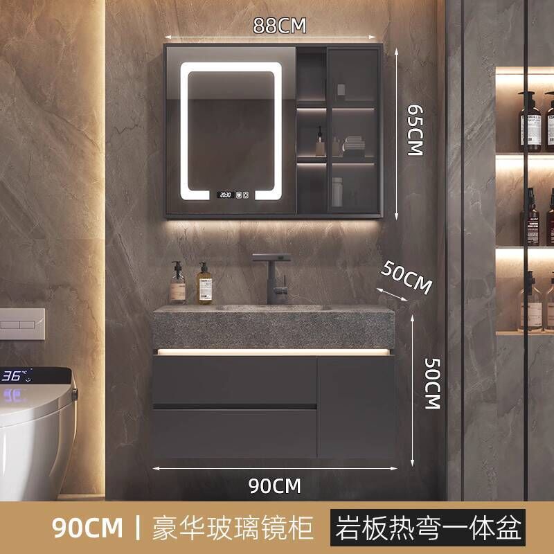 衛生間洗手臉盆池巖板熱彎一體盆浴室櫃組合衛浴櫃洗漱臺