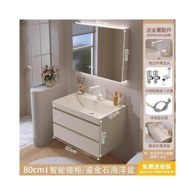 奶油風鎏金石一體盆浴室櫃組合衛生間洗漱臺洗臉盆櫃